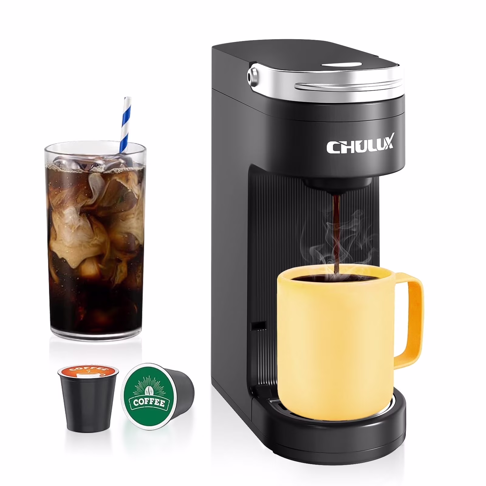 CHULUX Slim Single Serve Coffee Machine, One Cup Coffee Maker for K Pod, Black