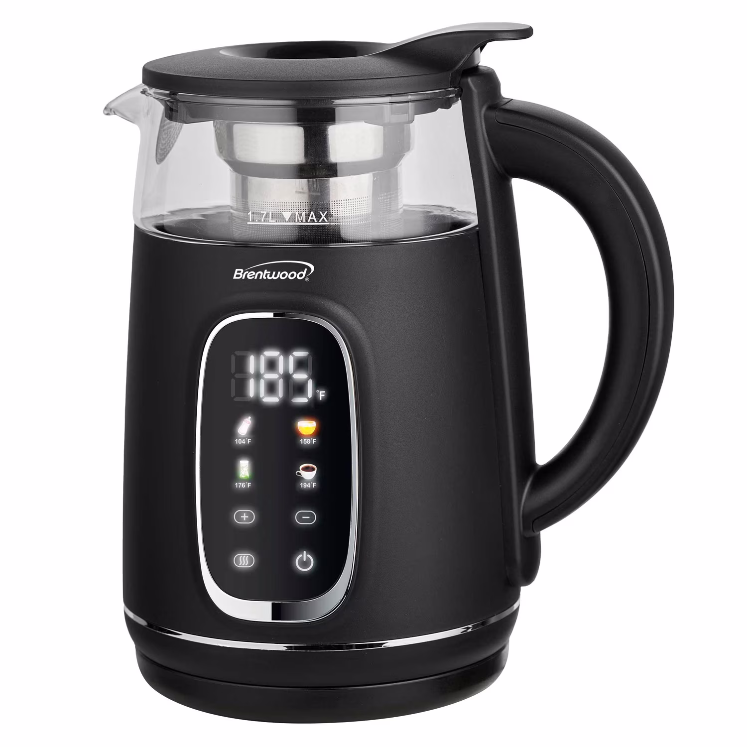 Brentwood 1,100-Watt 1.7-L Cordless Digital Glass Electric Kettle with Tea Infuser (Black), KT-2018DBK