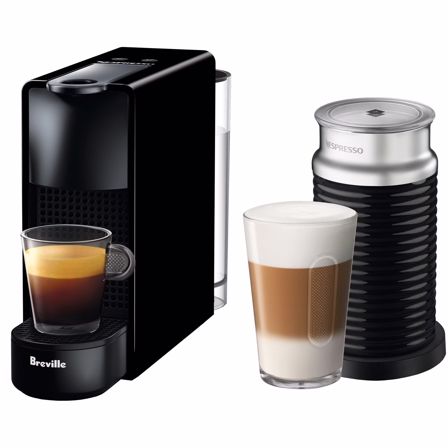 Breville New Nespresso Essenza Mini Single-Serve Machine Aeroccino Milk Frothier, Black