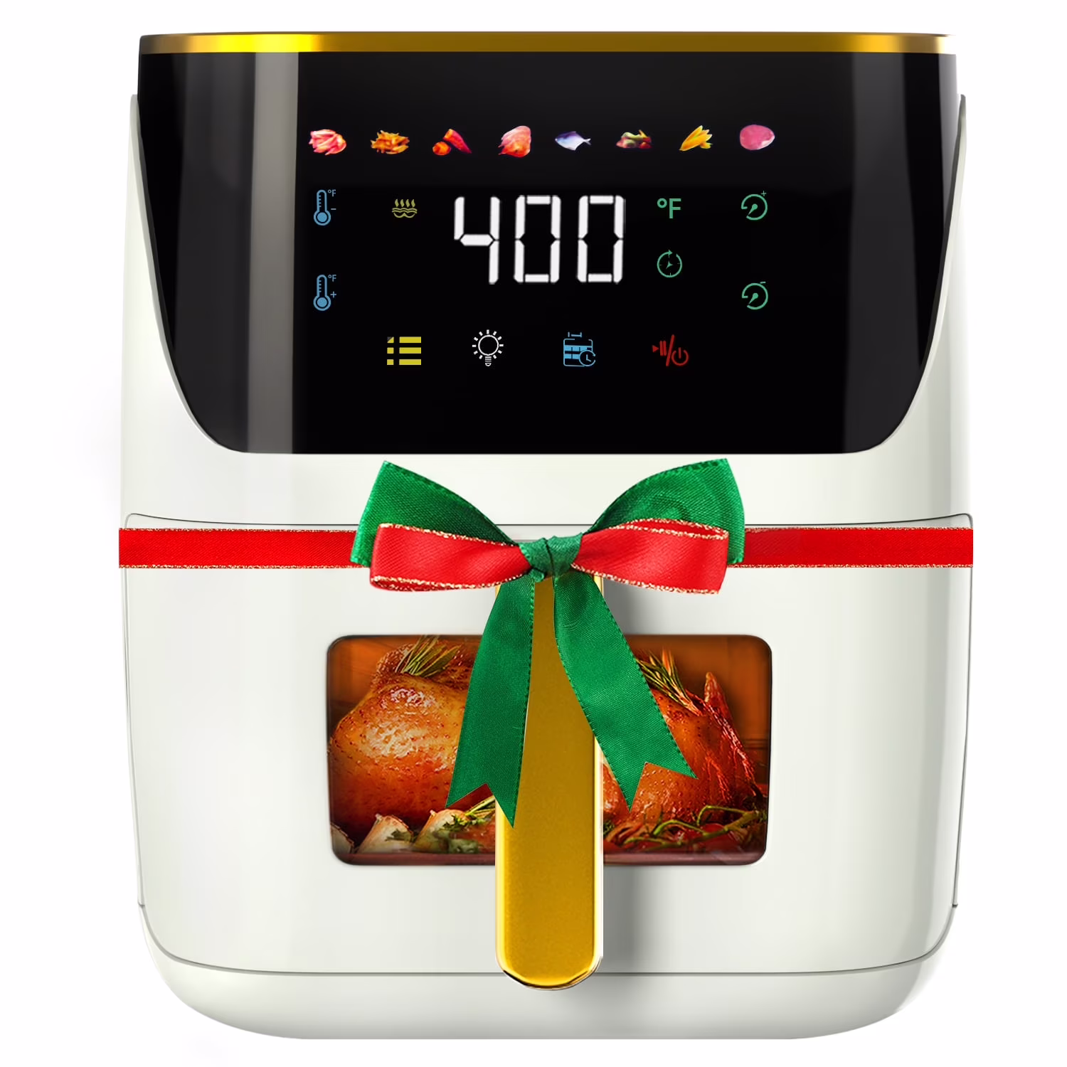 Bluebow Newest Air Fryer Large 8.5 QT, White, 8 in 1 Touch Screen, Visible Window, 1750W