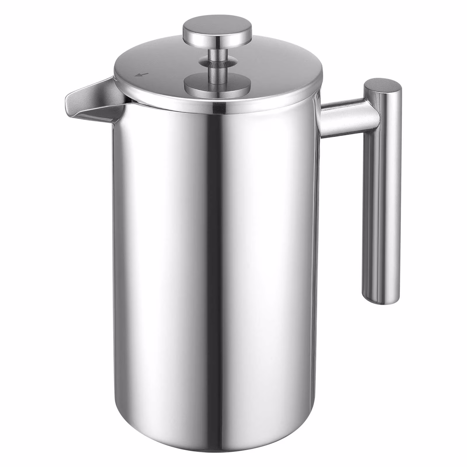 KFFKFF Stainless Steel French Press Coffee Maker, 34 Ounce (1 Liter) Double-Wall Insulated Coffee and Tea Brewer with Filter, Ideal for Home, Kitchen, Camping, and Travel, Silver