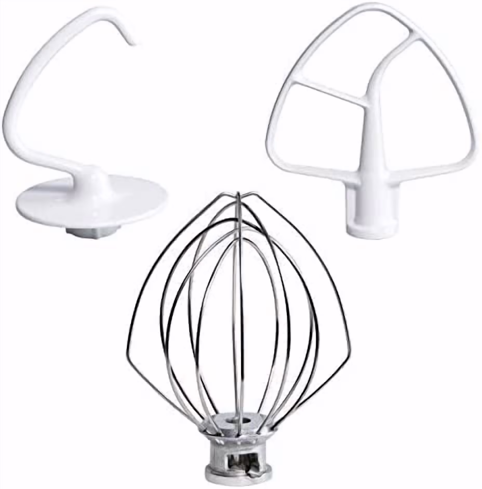 Stainless Steel Mixers Accessories Set: Wire Whip, Dough Hook, Coated Flat Blade Paddle with Scraper for Kitchen Aid Tilt-Head Stand Mixers
