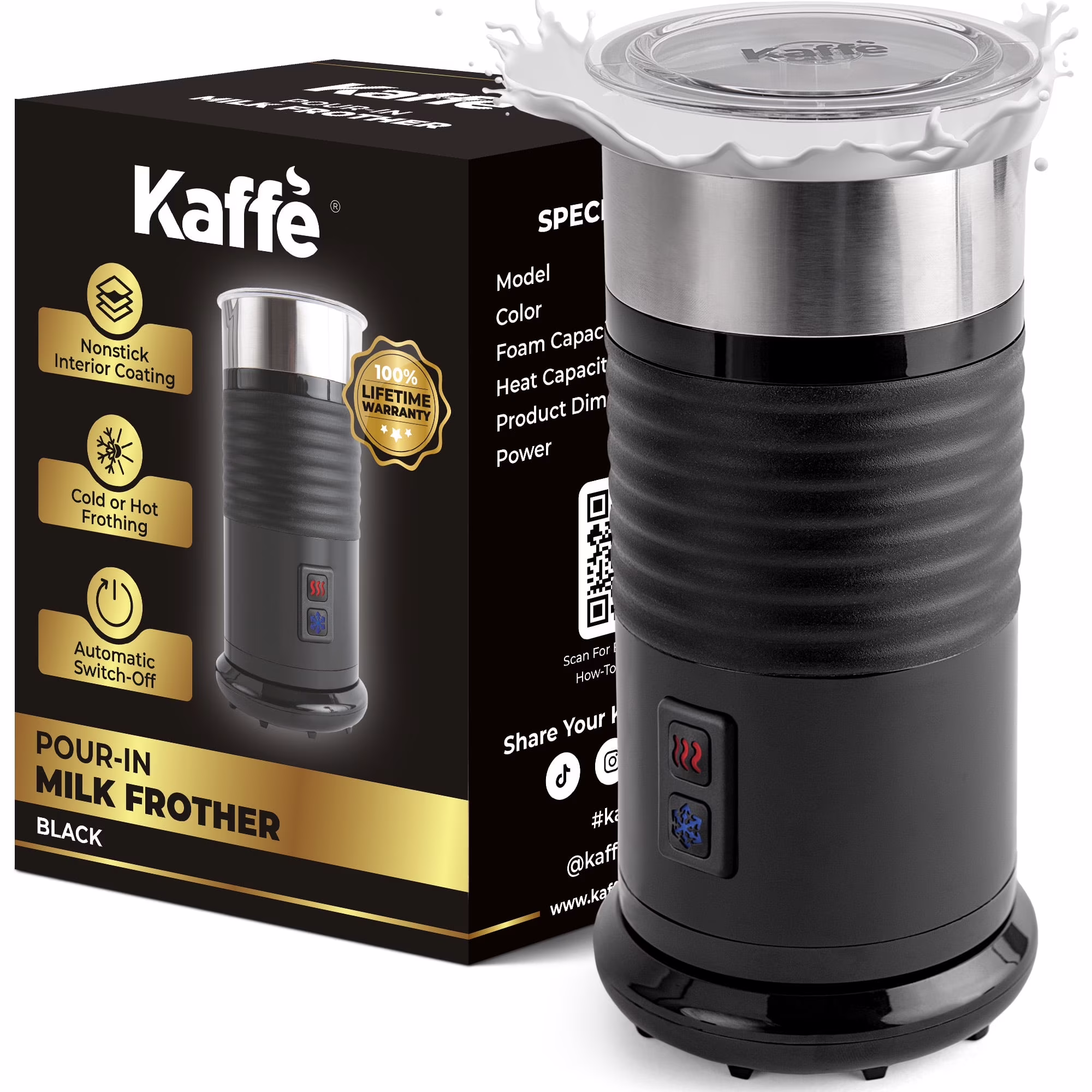 Kaffe 3-in-1 Electric Milk Frother & Steamer �C 4oz, Non-Stick, Hot & Cold Foam, Barista Tool with 2 Whisks