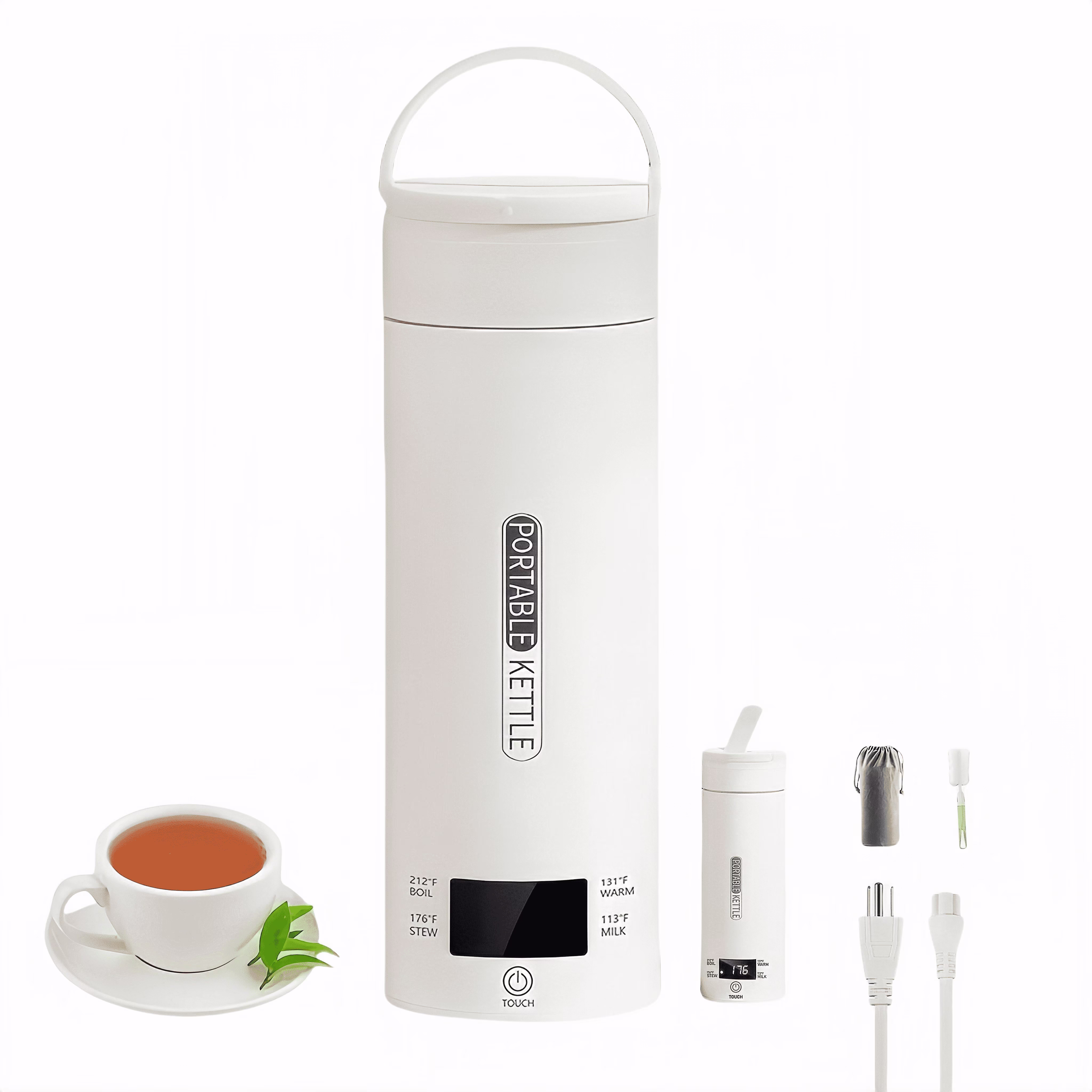 KYFIU Travel Electric Kettle,Portable Small Mini Tea Coffee Kettle Water Boiler,Constant Temperature Insulation Electric Cup,Liquid Crystal Display,Multi Stage Temperature Control,White