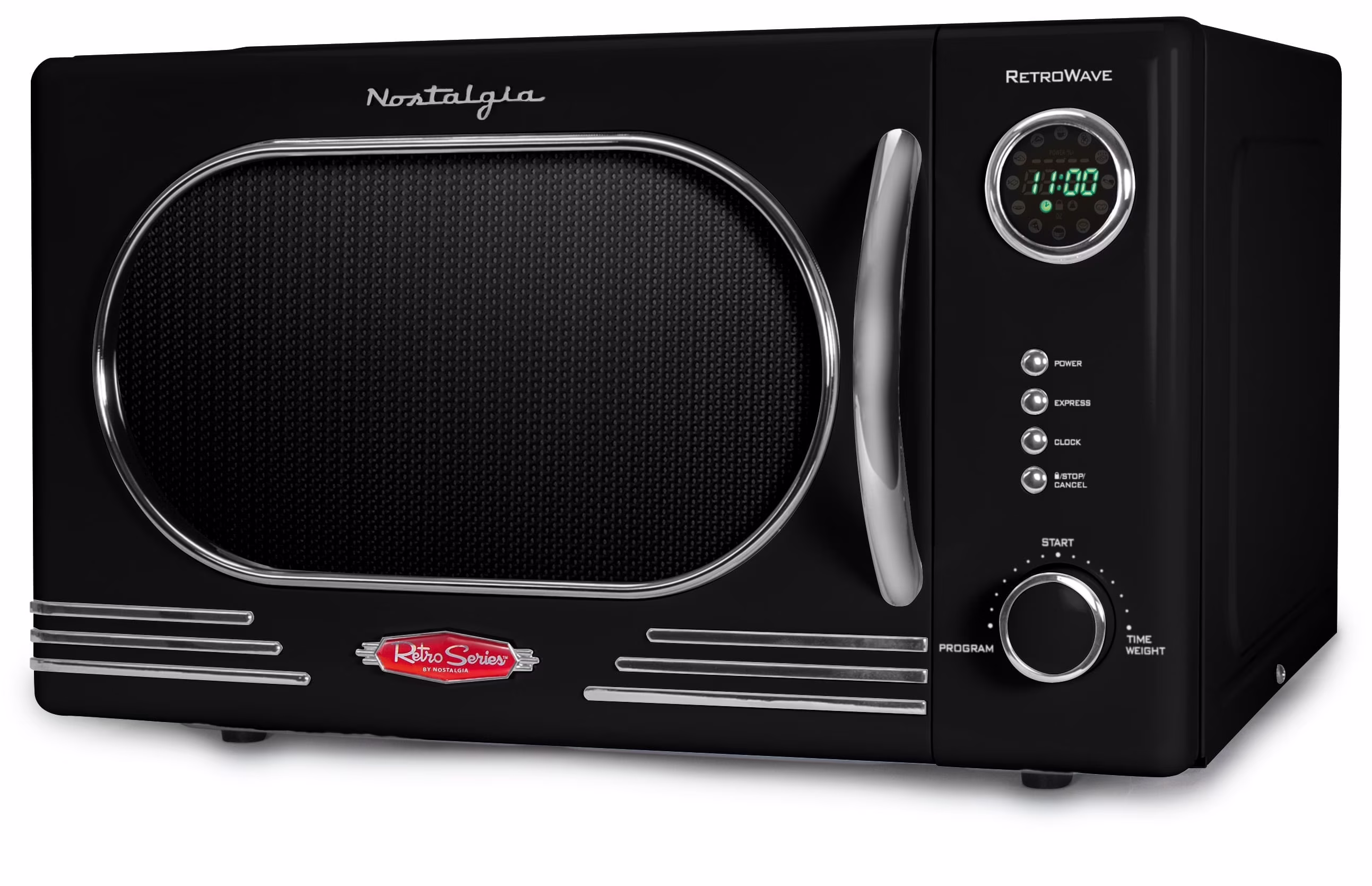 Nostalgia Retro Countertop Microwave Oven - Large 1000-Watt - 1.1 cu ft - 12 Pre-Programmed Cooking Settings - Digital Clock - Kitchen Appliances - Black