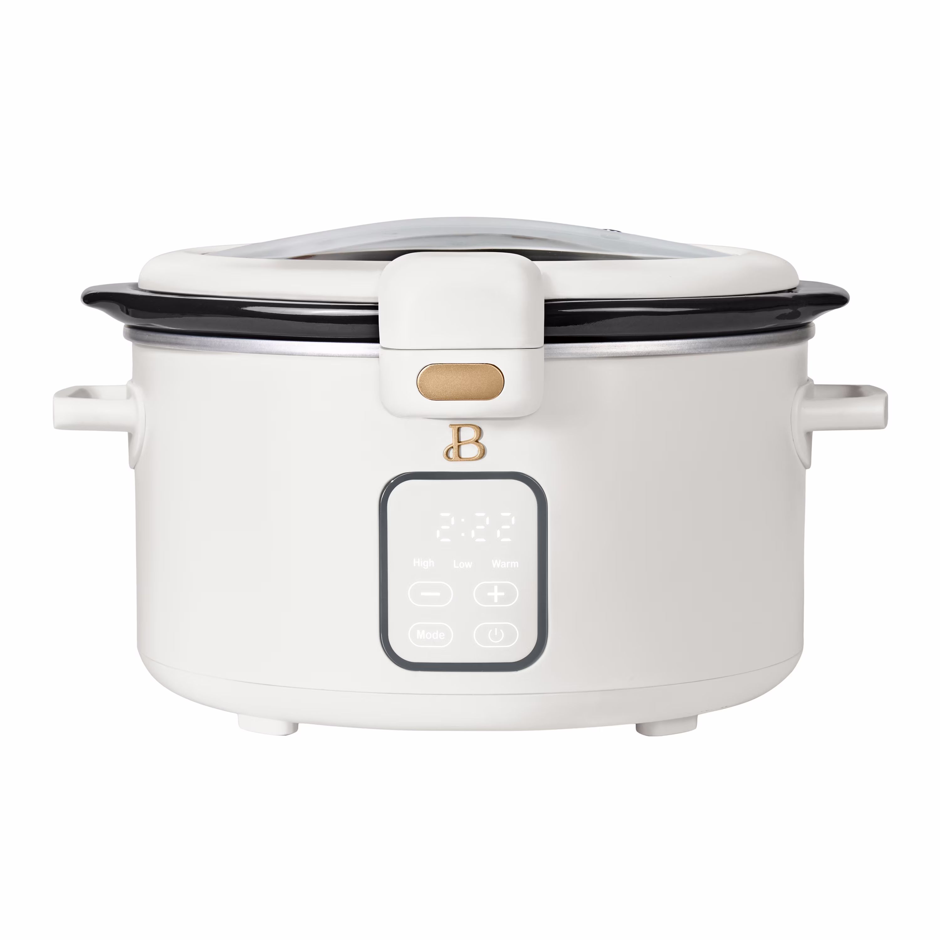 Beautiful 4 Qt Digital Slow Cooker with Hinged Locking Lid, White Icing by Drew Barrymore