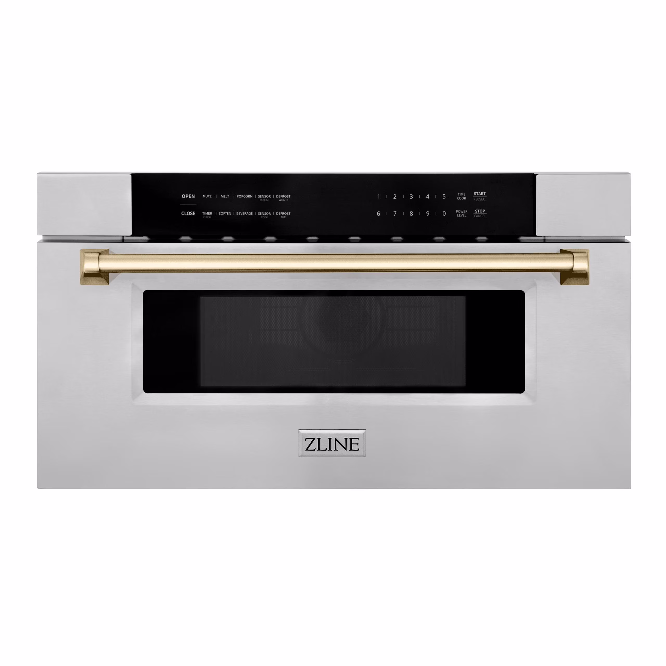 ZLINE Autograph Edition 30" 1.2 cu. ft. Built-In Microwave Drawer in Stainless Steel with Gold Accents