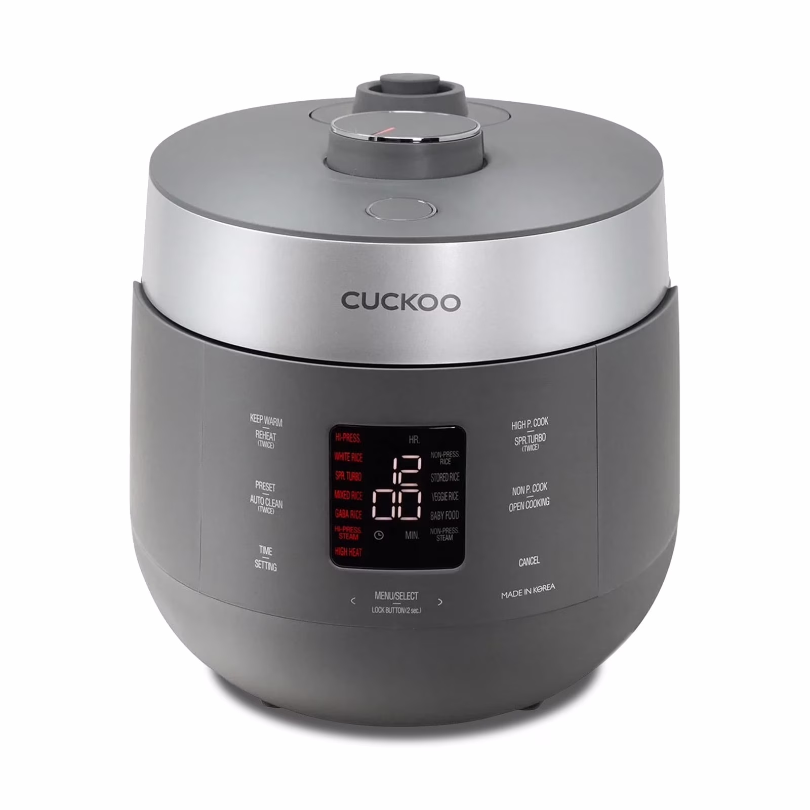 CUCKOO CRP-ST0609FG 6-Cup (Uncooked) / 12-Cup (Cooked) Twin Pressure Rice Cooker & Warmer with Nonstick Inner Pot, 16 Menu Options, 3 Voice Guide, Auto Clean (Gray)