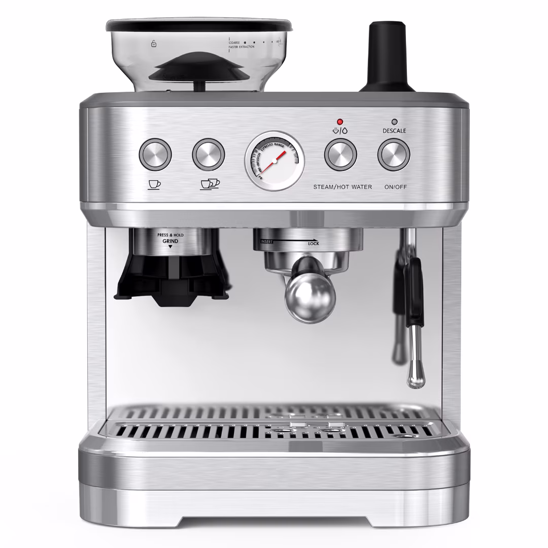 Espresso Machine with Milk Frother and Grinder, 2.5L Water Tank, Brushed Stainless Steel