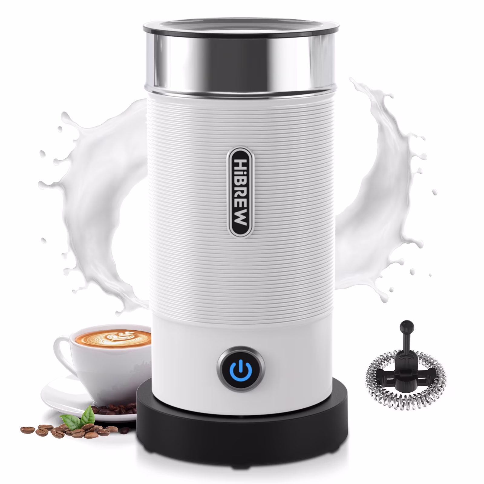 HiBREW 4-in-1 Electric Milk Frother & Steamer for Lattes/Cappuccinos, Non-Stick & Easy Clean White