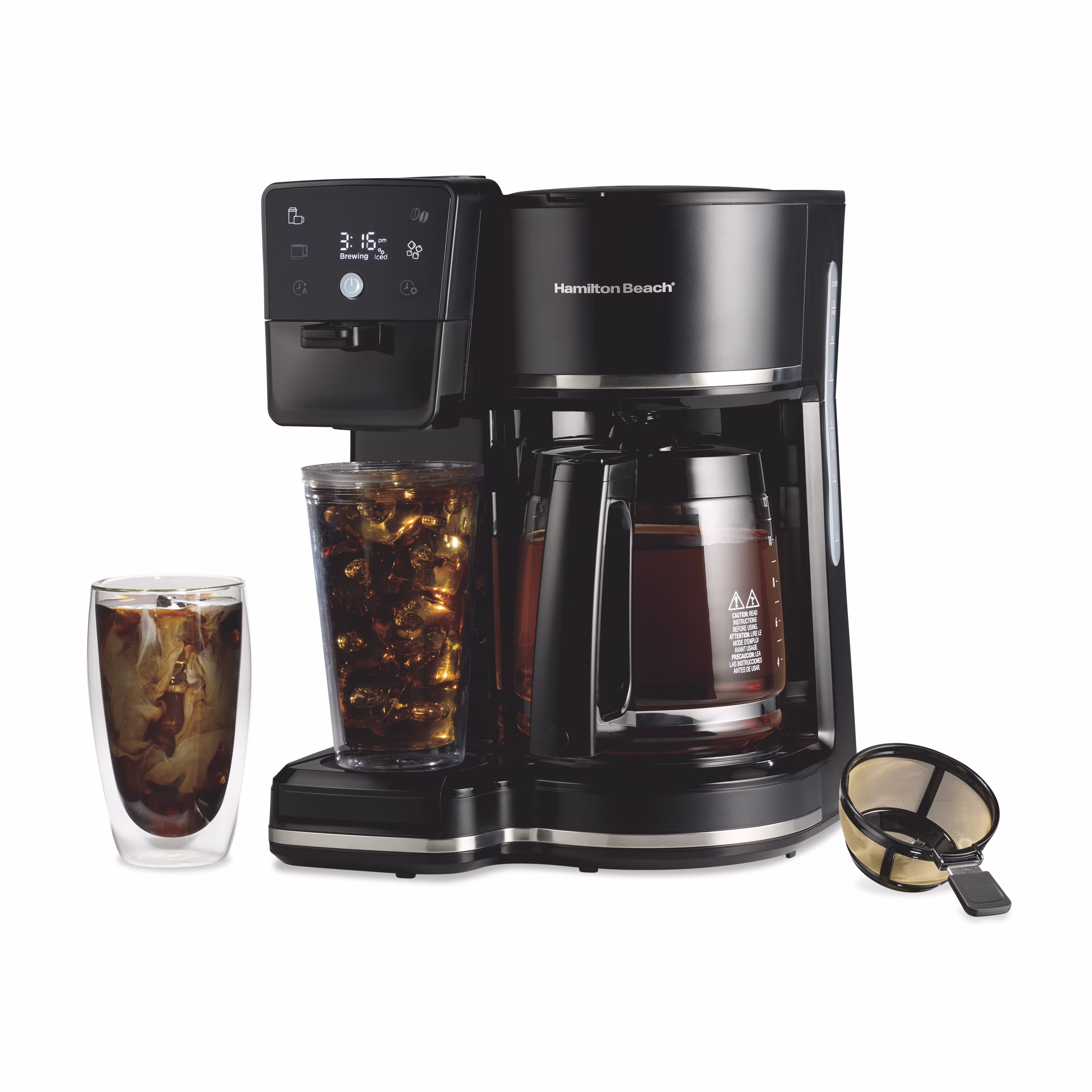 Hamilton Beach 2-Way Programmable Iced/Hot Coffee Maker, Single-Serve and 12 Cup Glass Carafe, 47501J