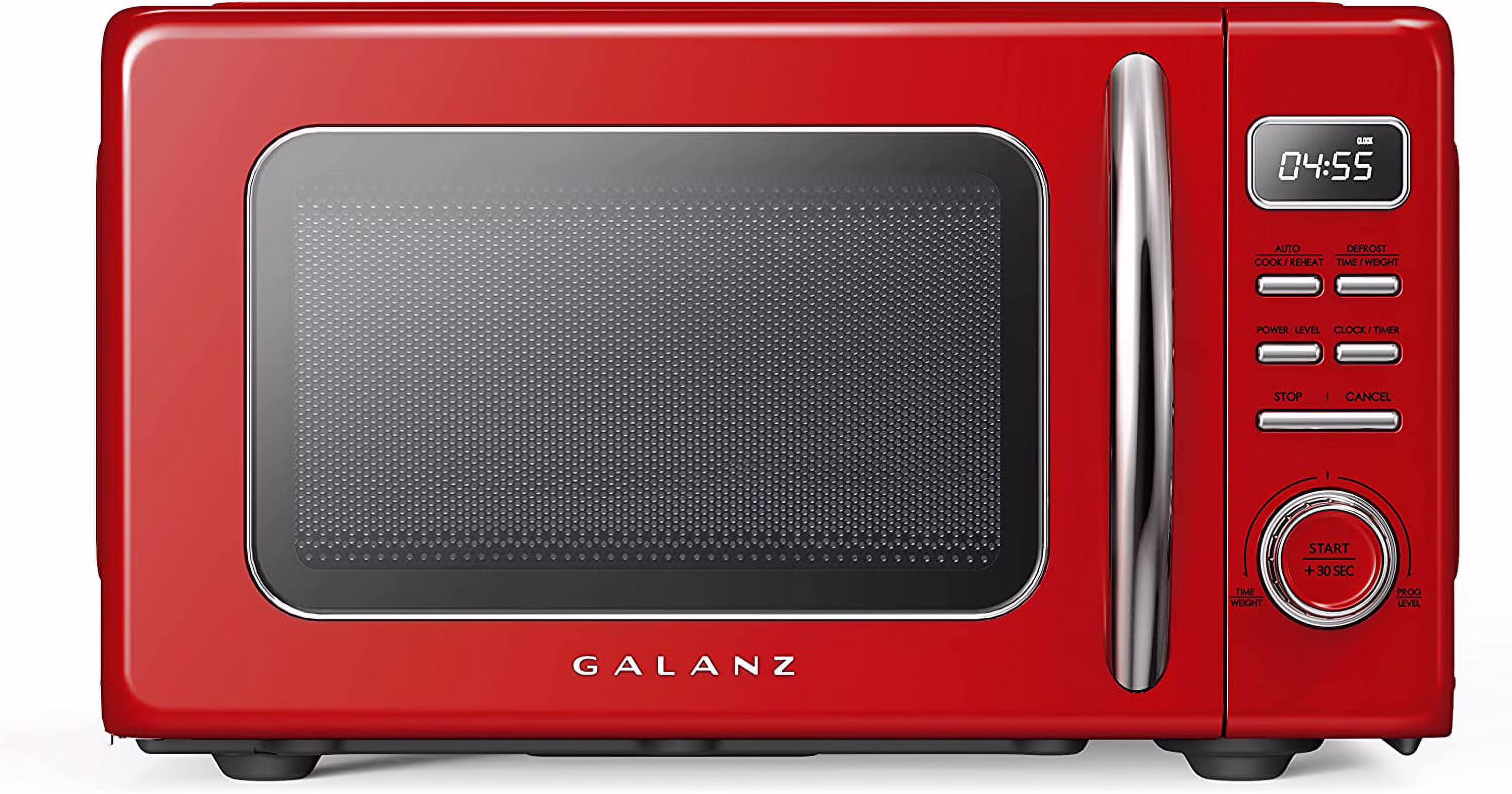 Galanz GLCMKZ09RDR09 Retro Countertop Microwave Oven with Auto Cook & Reheat, Defrost, Quick Start Functions, Easy Clean with Glass Turntable, Pull Handle, 0.9 cu ft, Red