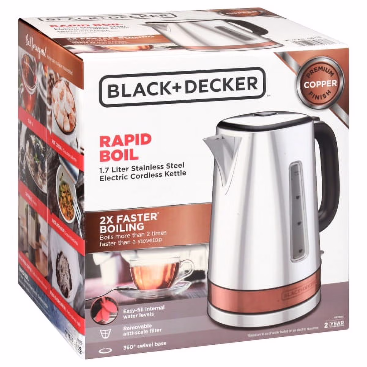 BLACK + DECKER KE3100C 1.7L Rapid Boil Stainless Steel Electric Cordless Kettle