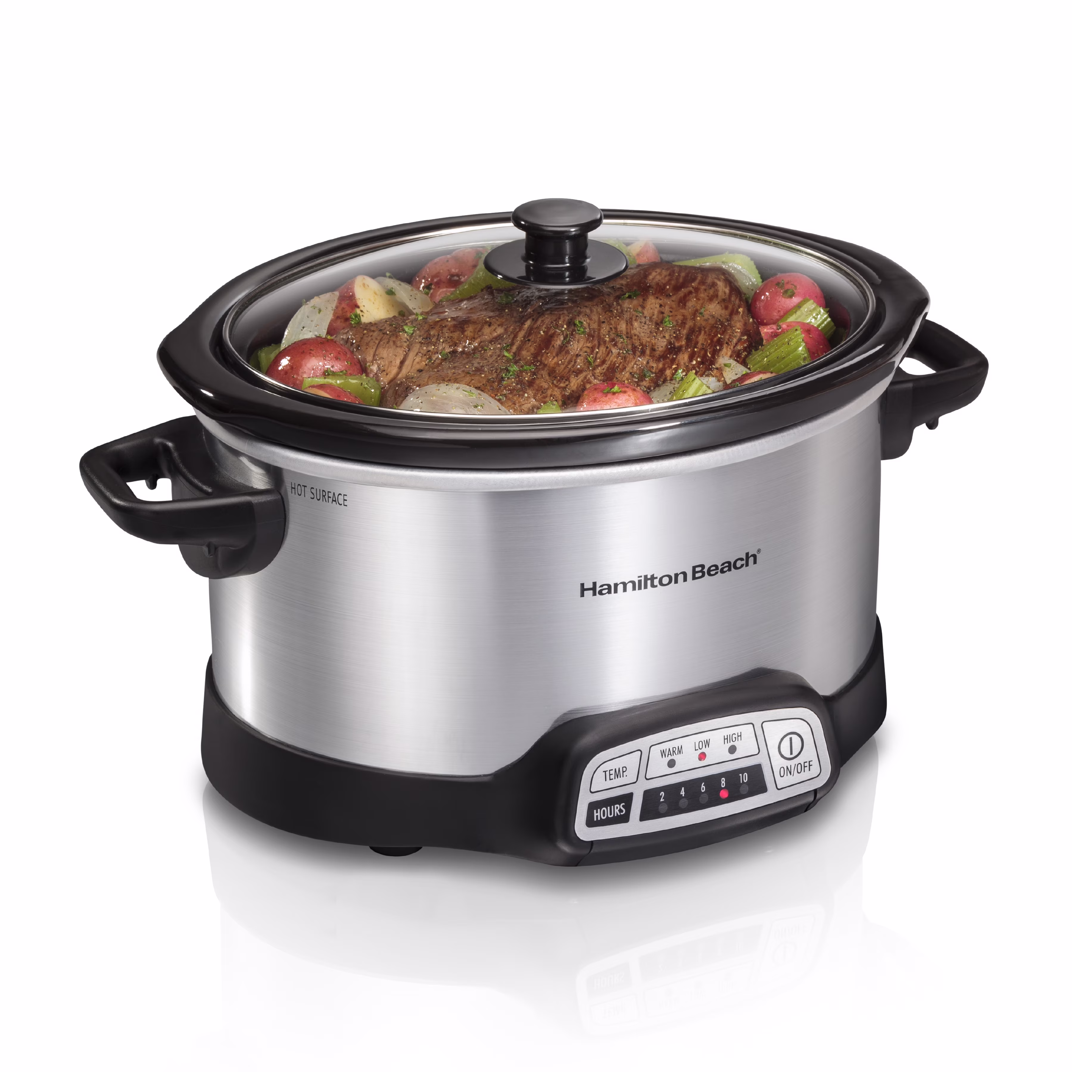 Hamilton Beach 4 Qt Programmable Slow Cooker, Stoneware Crock with Removable Pot, Stainless Steel