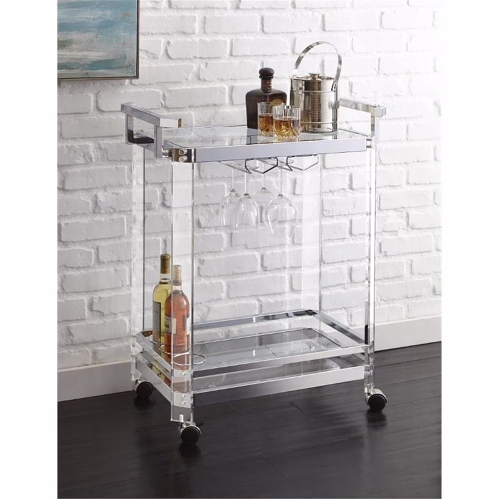 Bowery Hill Acrylic Tempered Glass and Chrome Bar Cart