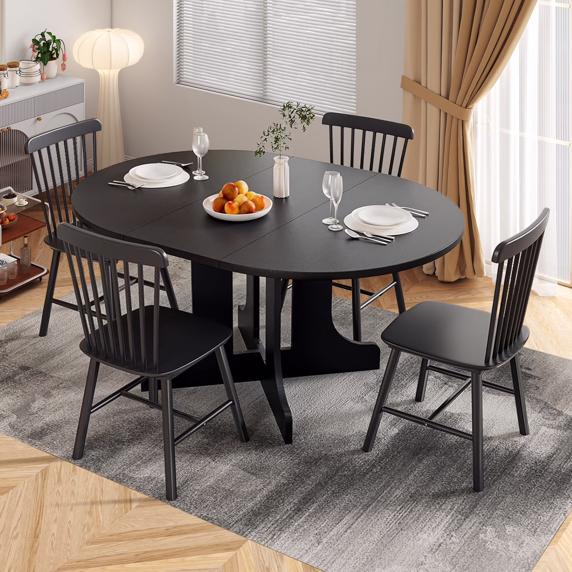 Aukfa Extendable Dining Room Table for 4-6,Oval Table Top with Removable Leaf for Kitchen Dining Living Room,Black