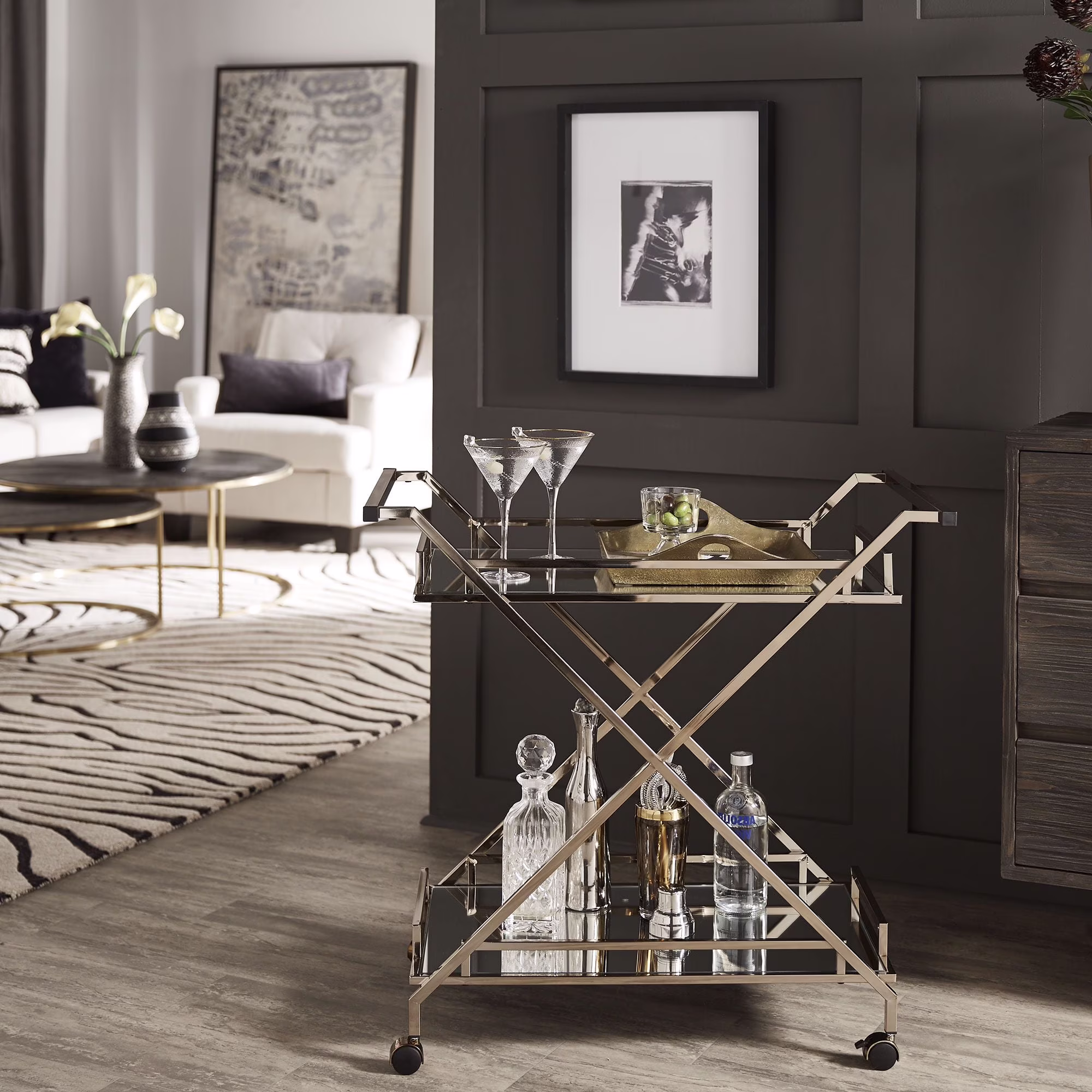 Weston Home Grosseto Champagne Gold Bar Cart