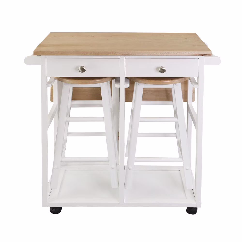 American Trails Breakfast Cart with Drop-Leaf Table, American Maple Top, Square - White
