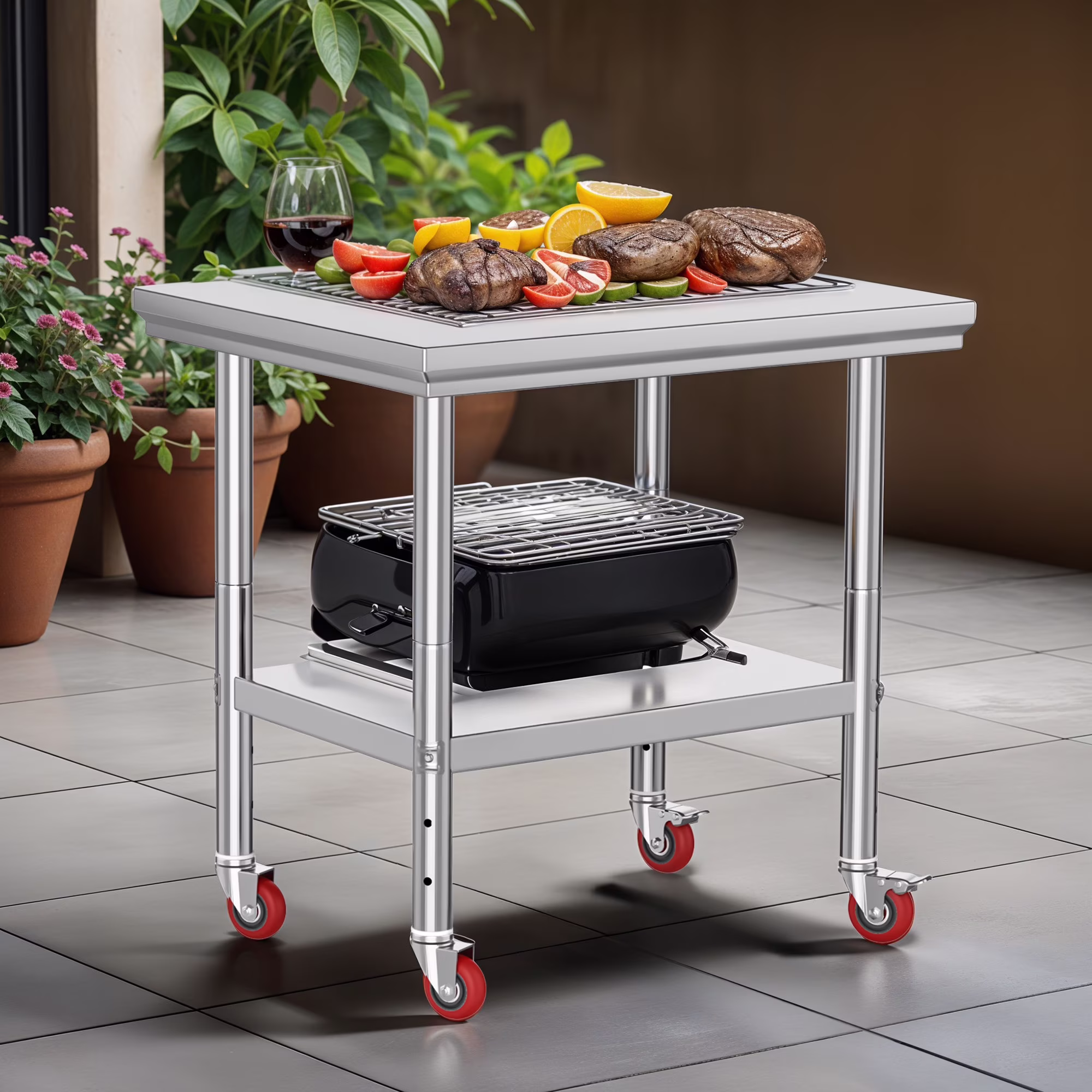 ModFusion Nsf Stainless Steel Table with Lockable Wheels, 30" x 24" Metal Work Table with Adjustable Undershelf, Rolling Workstations, 2.5x2 ft, Kitchen Cart, Portable