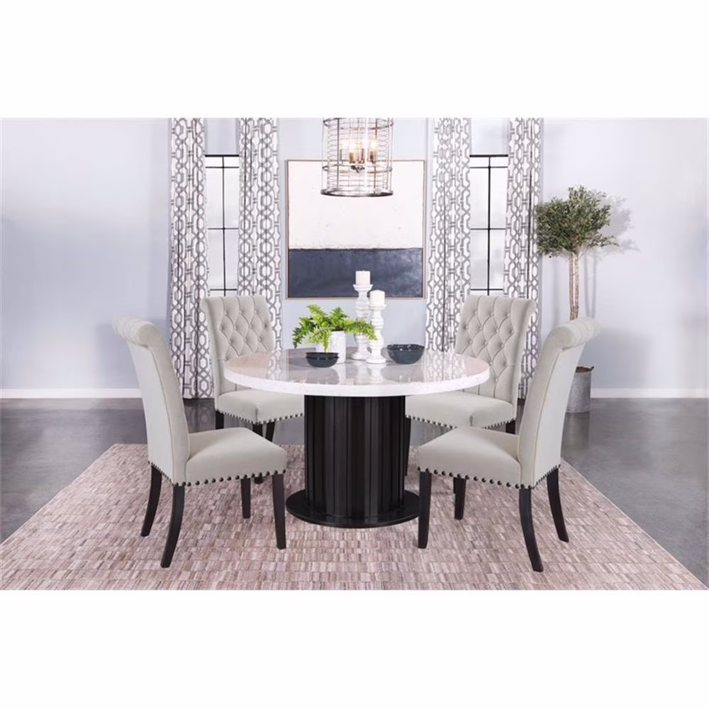 Maklaine 5-piece Marble Top Dining Set with Sand Velvet Chairs in Gray & White