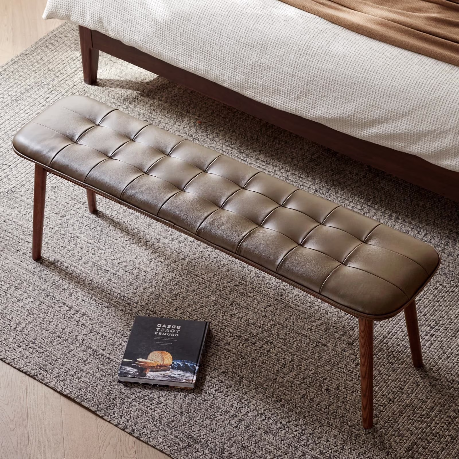 Xukmct Leather Cushion Bench with Wood Frame, Upholstered Dining Bench for Living Room, Dining Room, Brown
