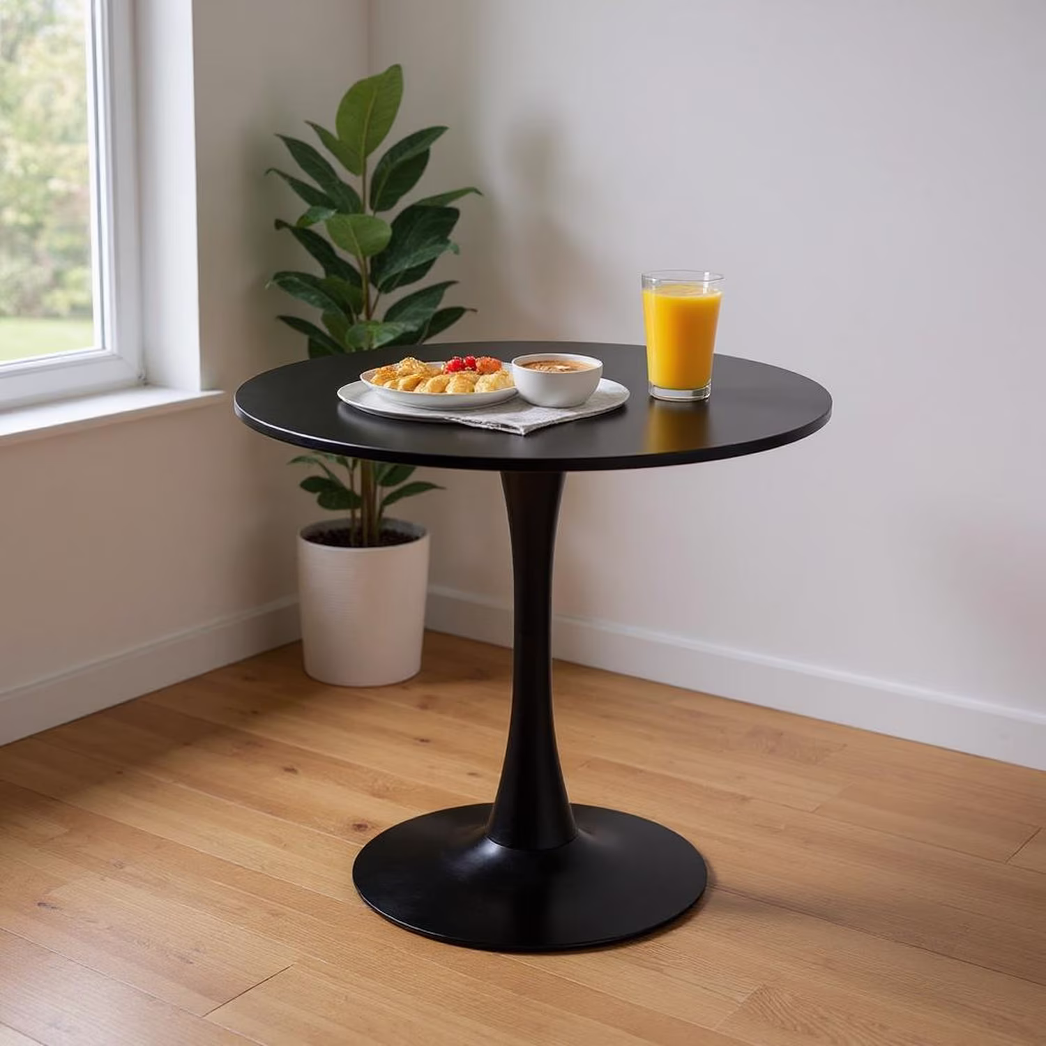 Homy Casa Modern Round Dining Table for Small Apartment Kitchen or Breakfast Nook, Black