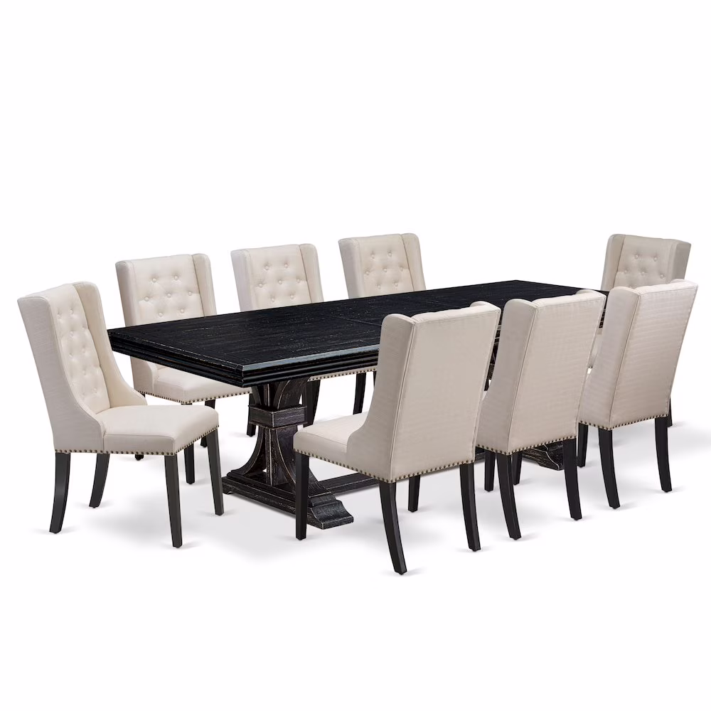 Luxe by East West Furniture 9 piece dining set of a dinner table and 8 dining room chairs & black legs