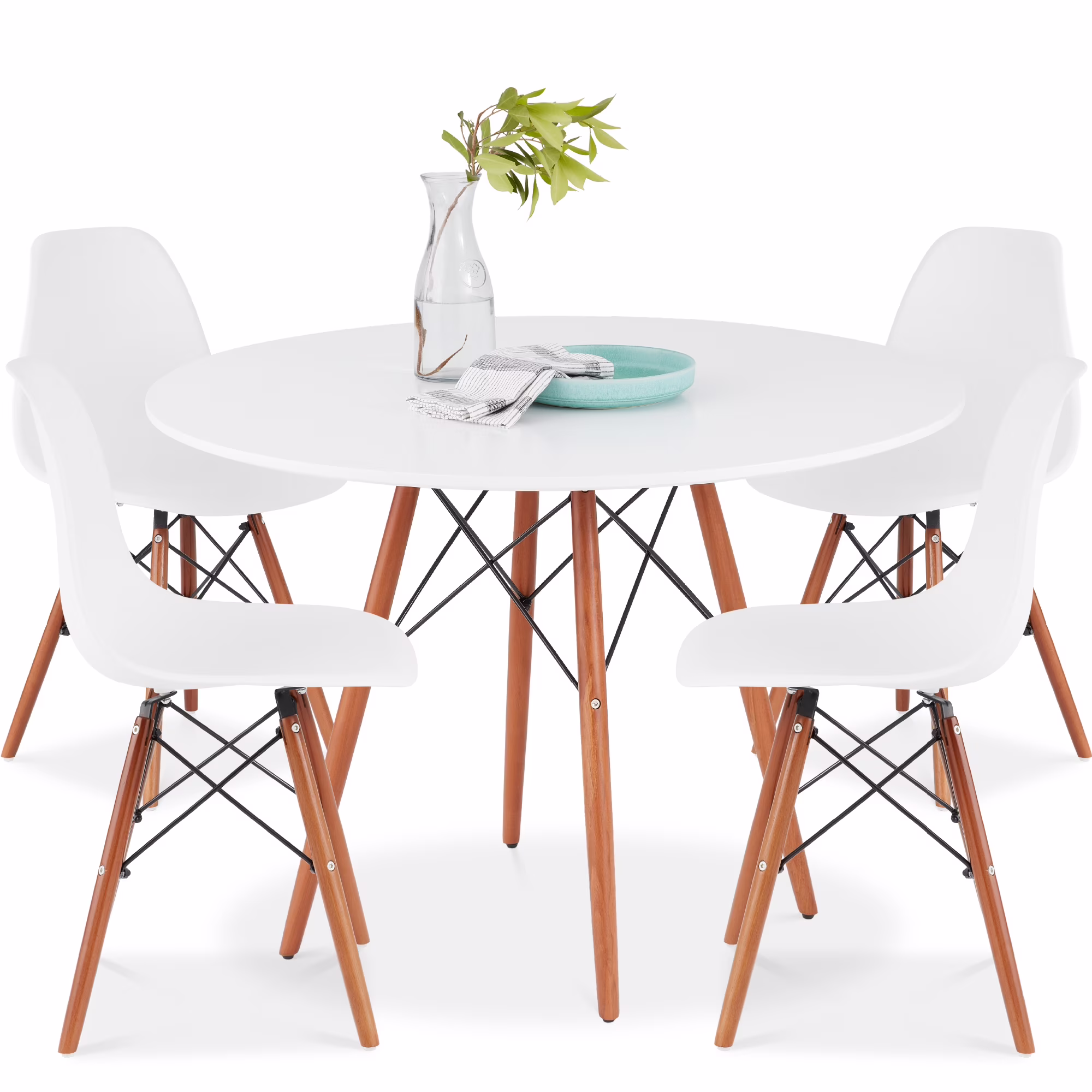 Best Choice Products 5-Piece Compact Mid-Century Modern Dining Set w/ 4 Chairs, Wooden Legs - White/Walnut