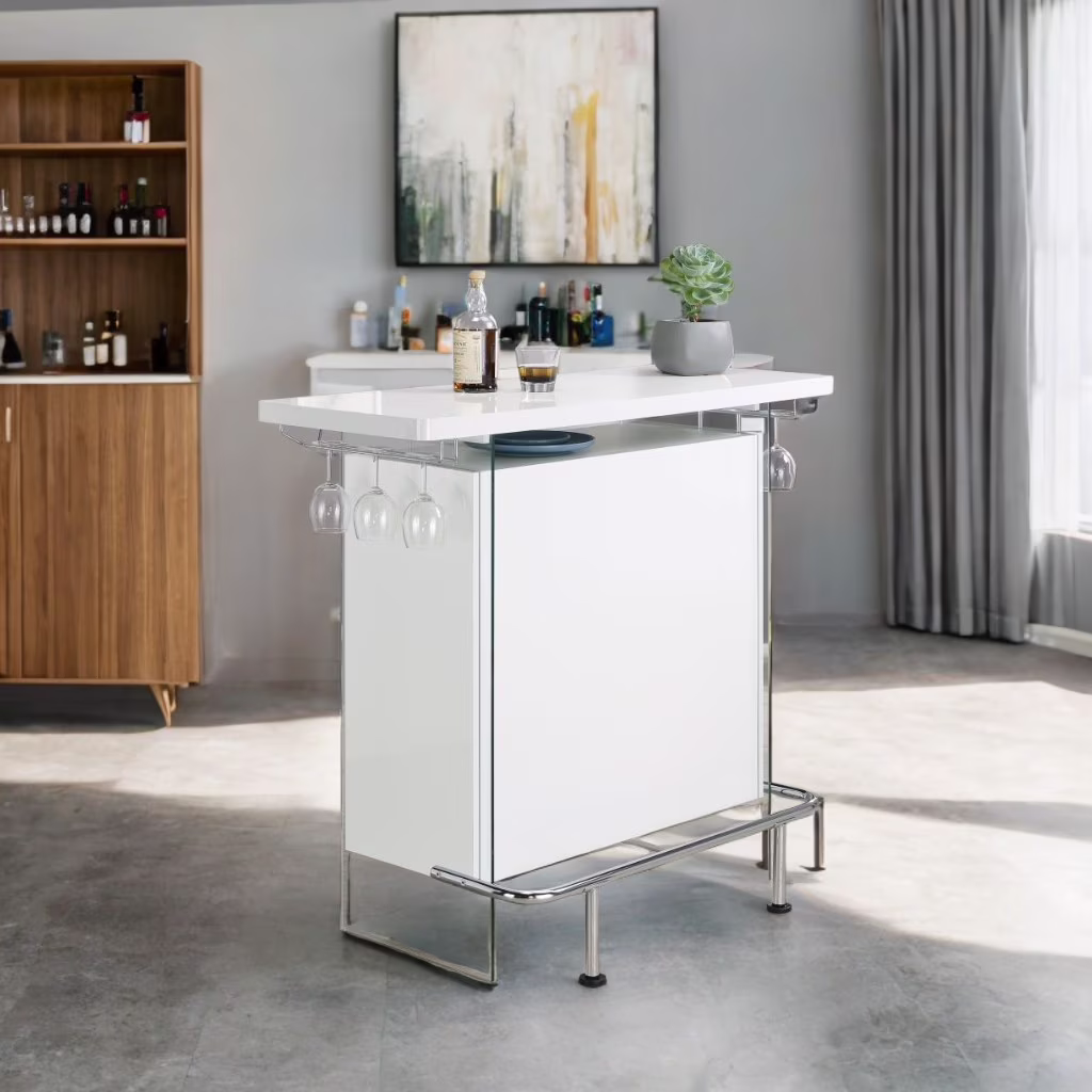 Kinney 2-tier Bar Cart with Storage Drawer White High Gloss and Chrome