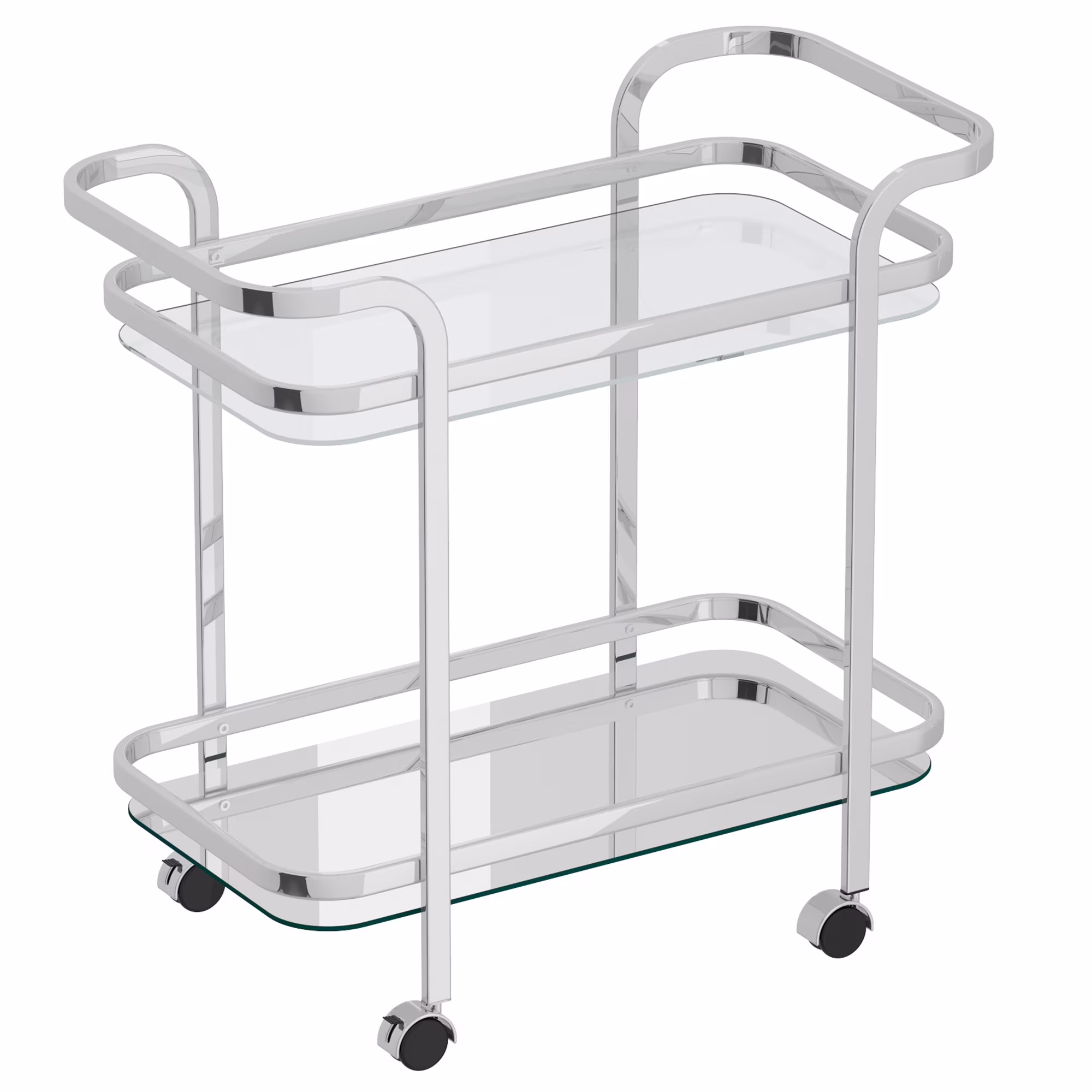 Contemporary Home Living 2-Tier Bar Cart with Glass Top - 29.5" - Chrome and Clear