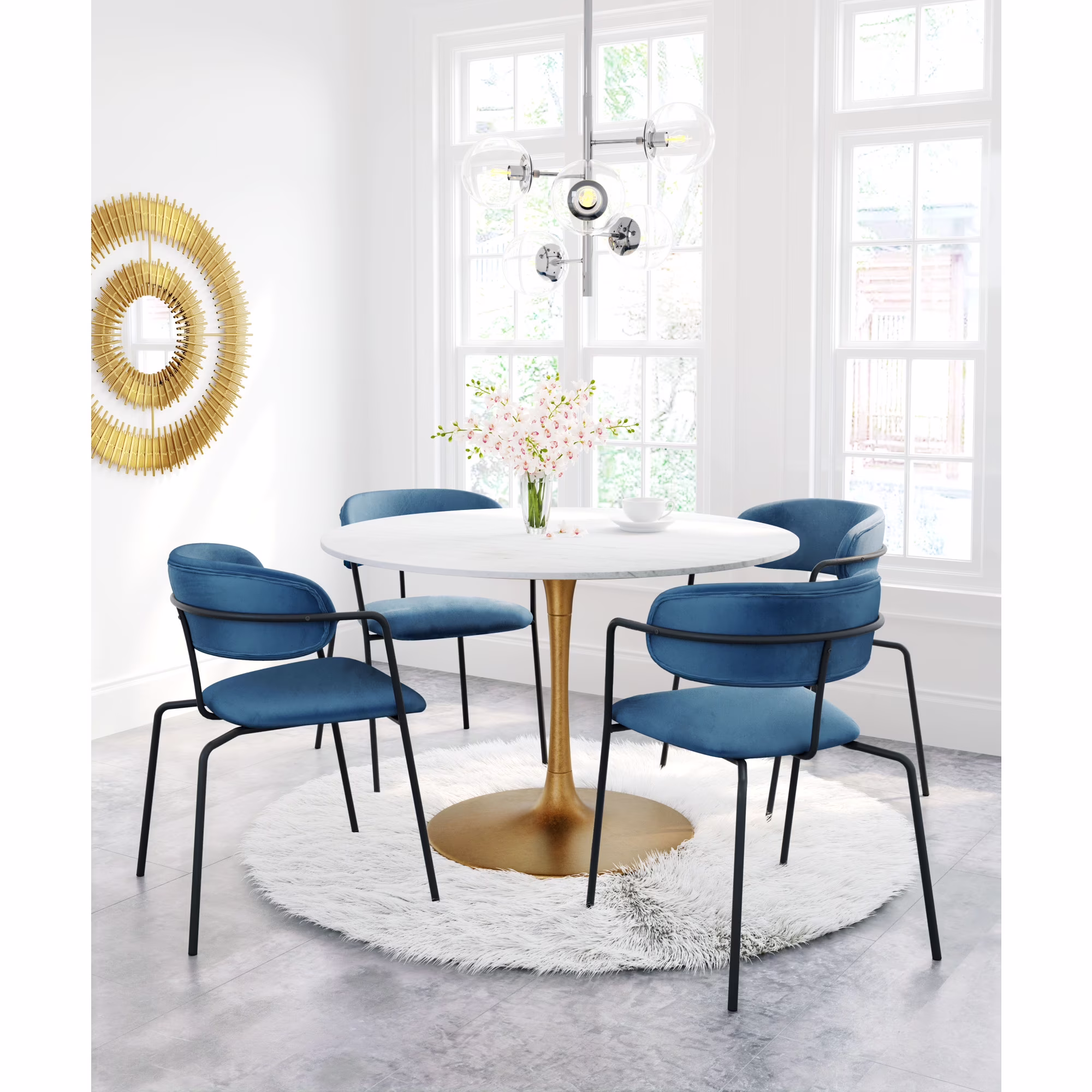 Ithaca Dining Table White & Gold Dining Table, Modern Style, Natural Marble round shape tabletop, MDF, Indoor Dining