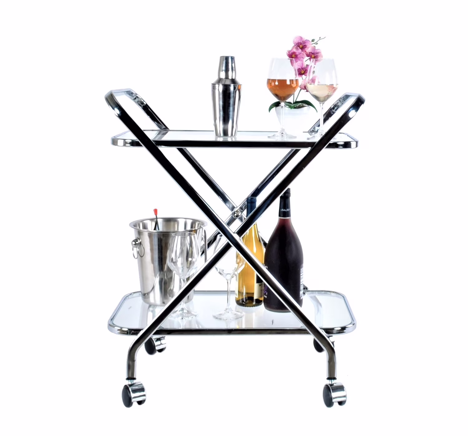 16.5" x 26.25" x 30.5" Chrome XShape Bar Cart