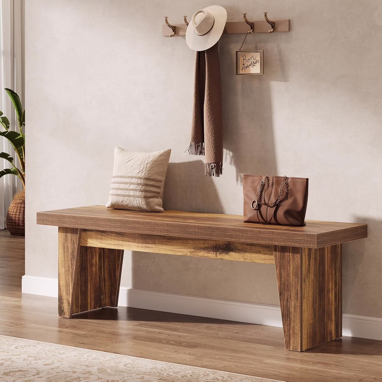 Tribesigns 55" Farmhouse Long Entryway Bench, Wood Entry Seat with Storage for Living Room, Brown