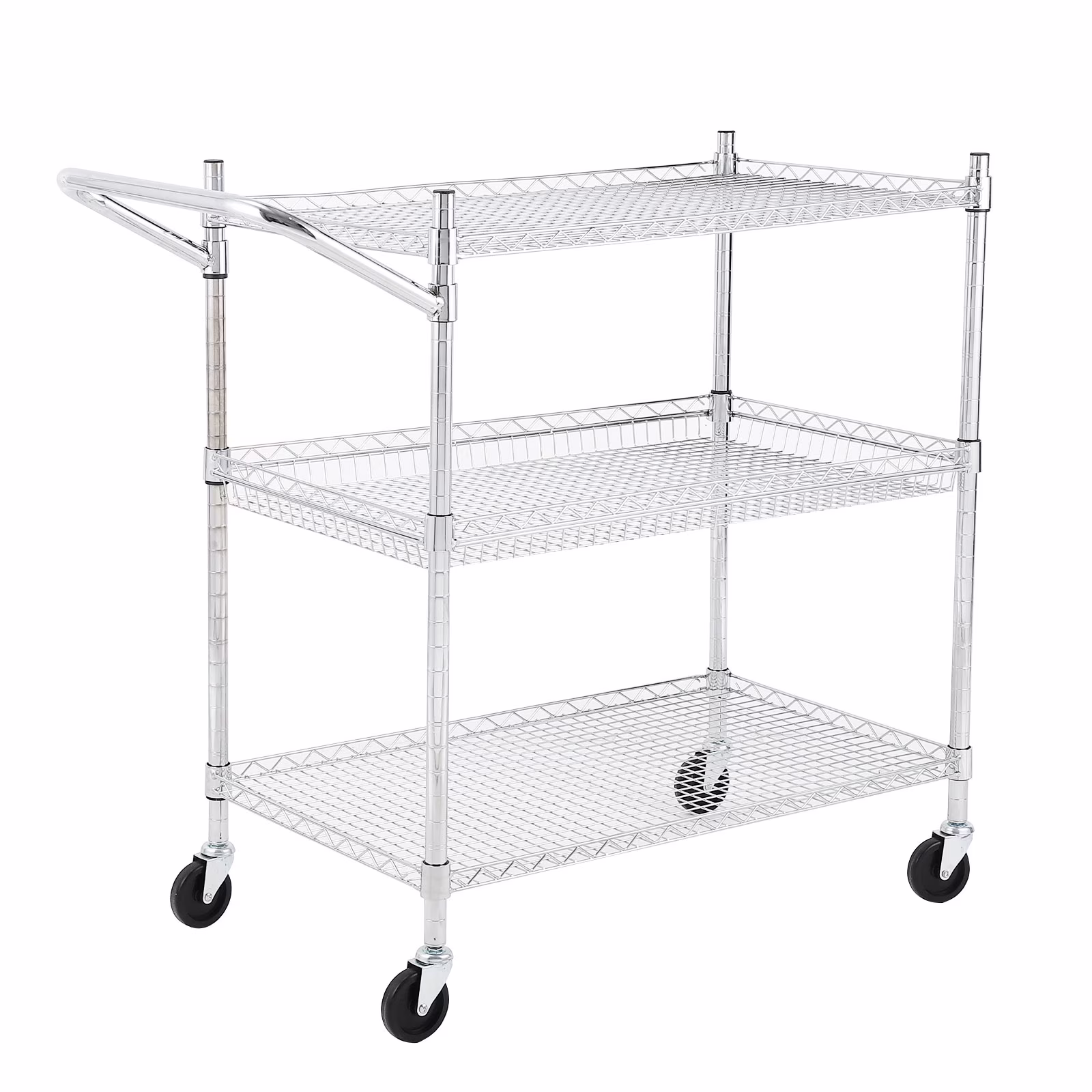 Heavy-Duty Utility Cart,Steel Service Trolley with Wheels for Restaurant and Kitchen Storage Solutions