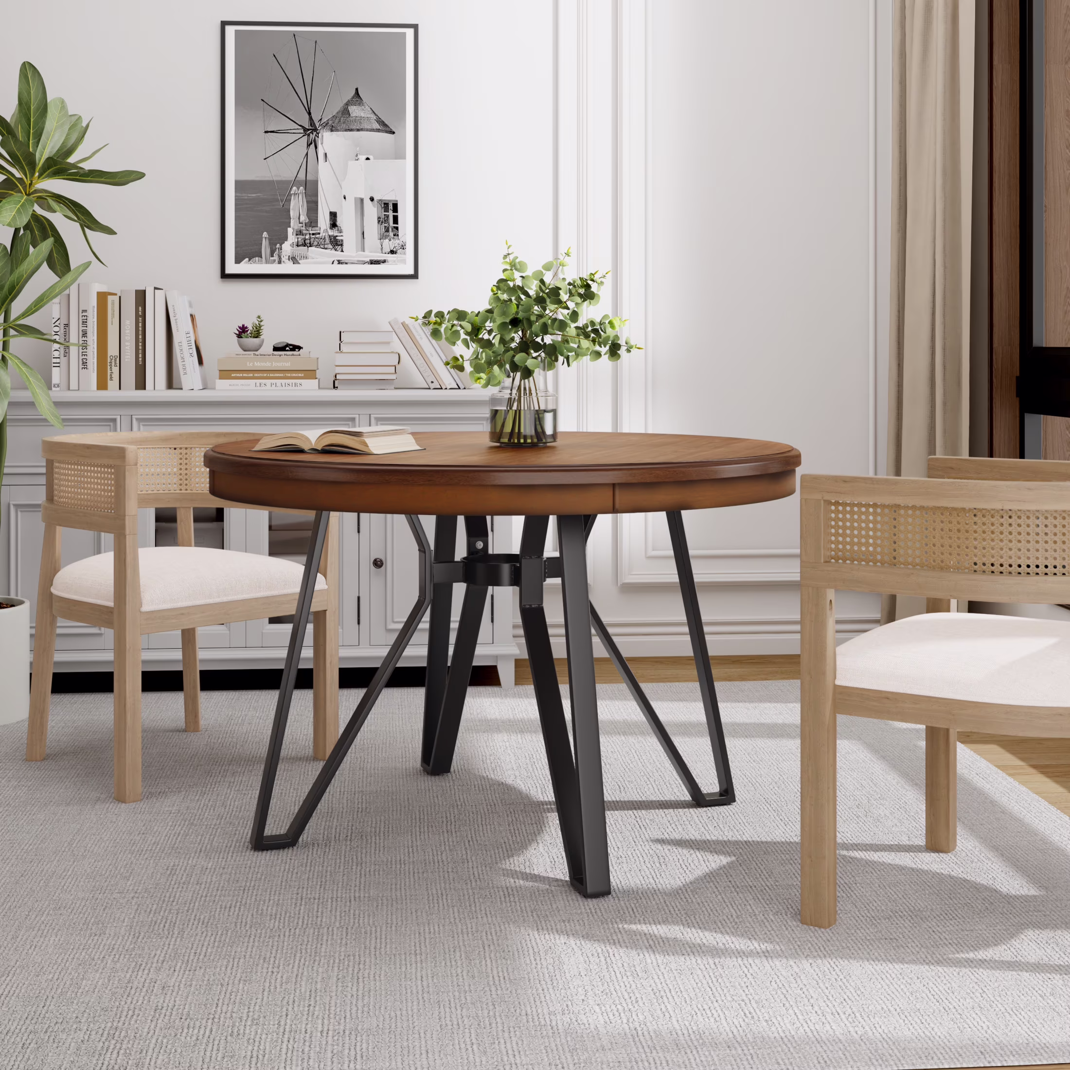 Kirs 46.85" Diameter Modern Round Dining Table with Metal Base, Light Ash + Black