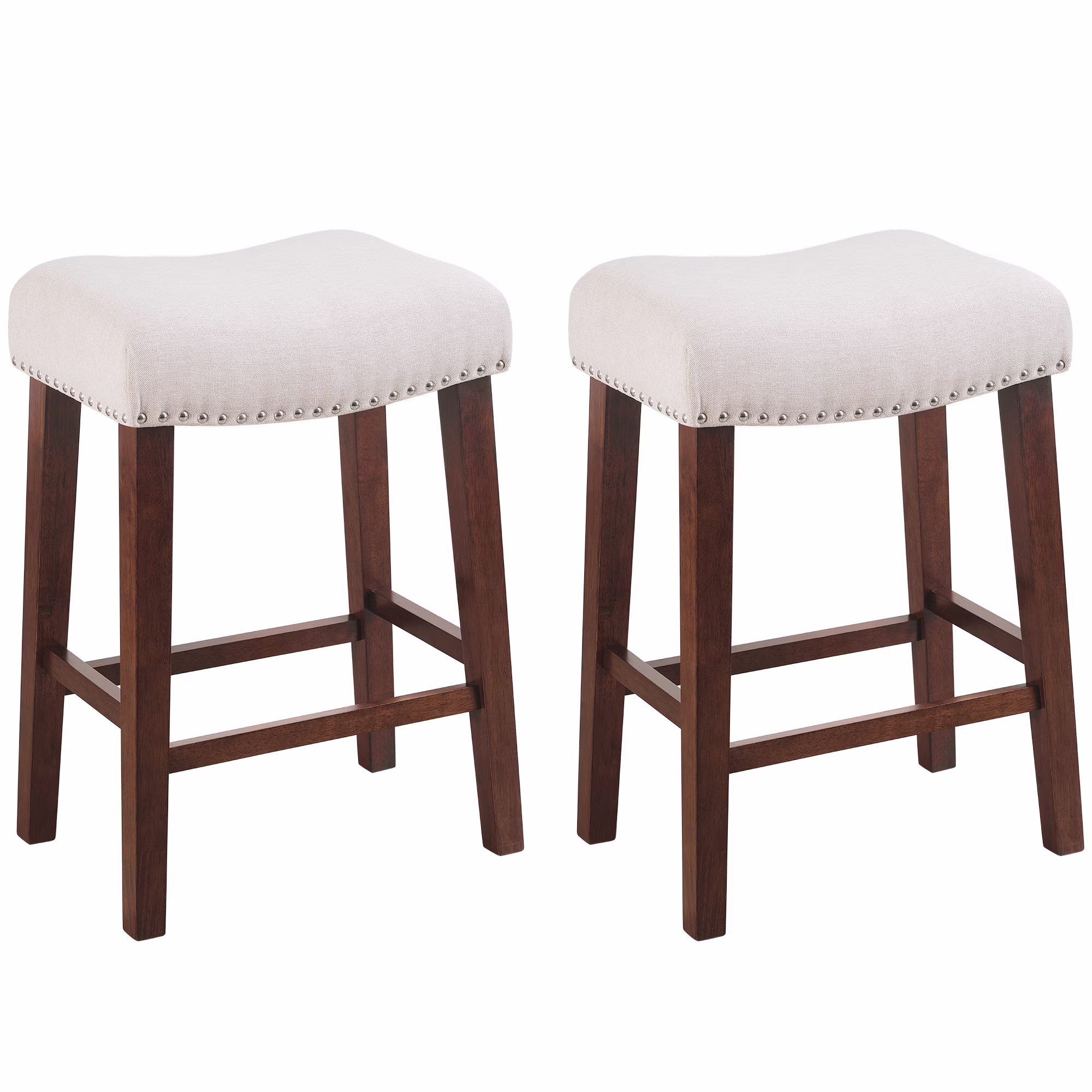 24 Inch Counter Height Bar Stools Set of 2 Saddle Barstools for Kitchen Island, Kitchen Stools with Nailhead Trim, Beige