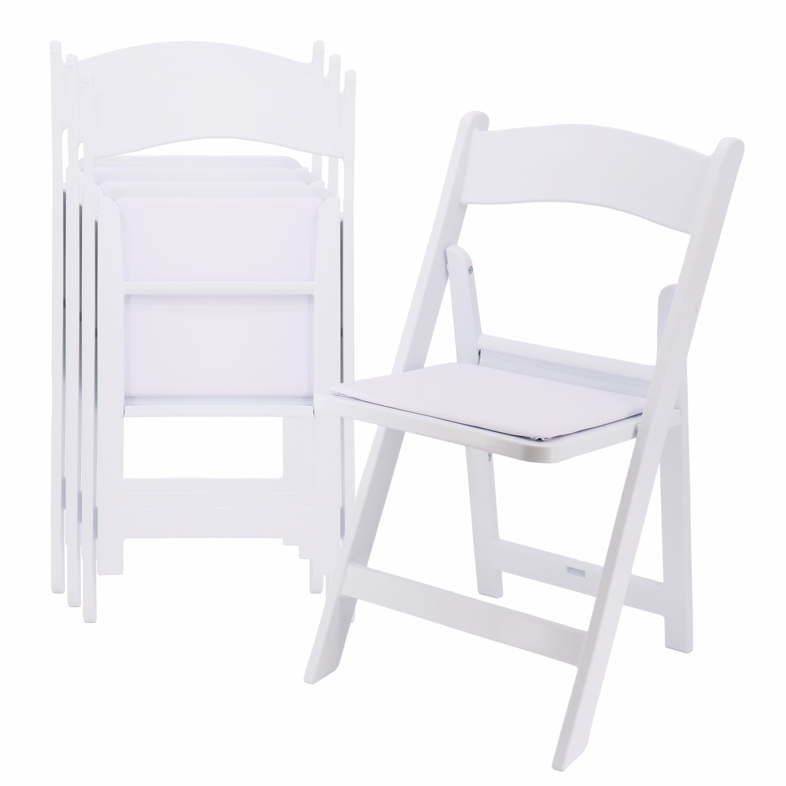 Elama 4 Piece Plastic Folding Resin Dinner Chair in White with Removable Seat Pad for Wedding, Picnic, Party, Indoor and Outdoor Events, 350 Lbs Weight Capacity