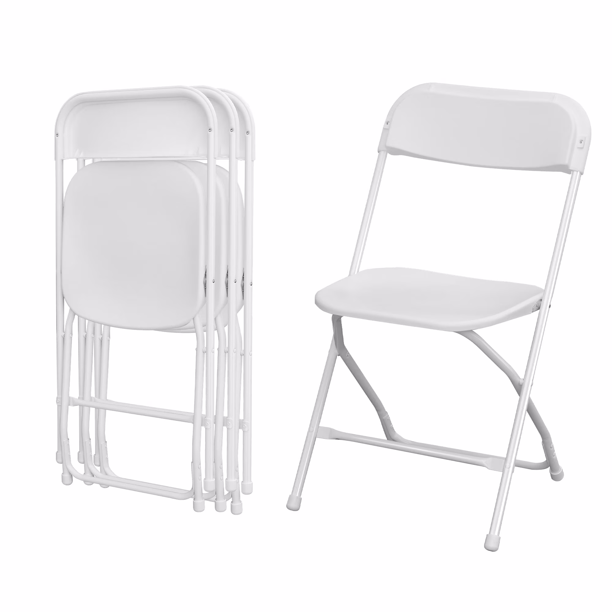 Gartooo 4 Pack Folding Plastic Chairs Set, Portable Commercial Chair with Steel Frame for Party Wedding Events Office Indoor Outdoor(White)