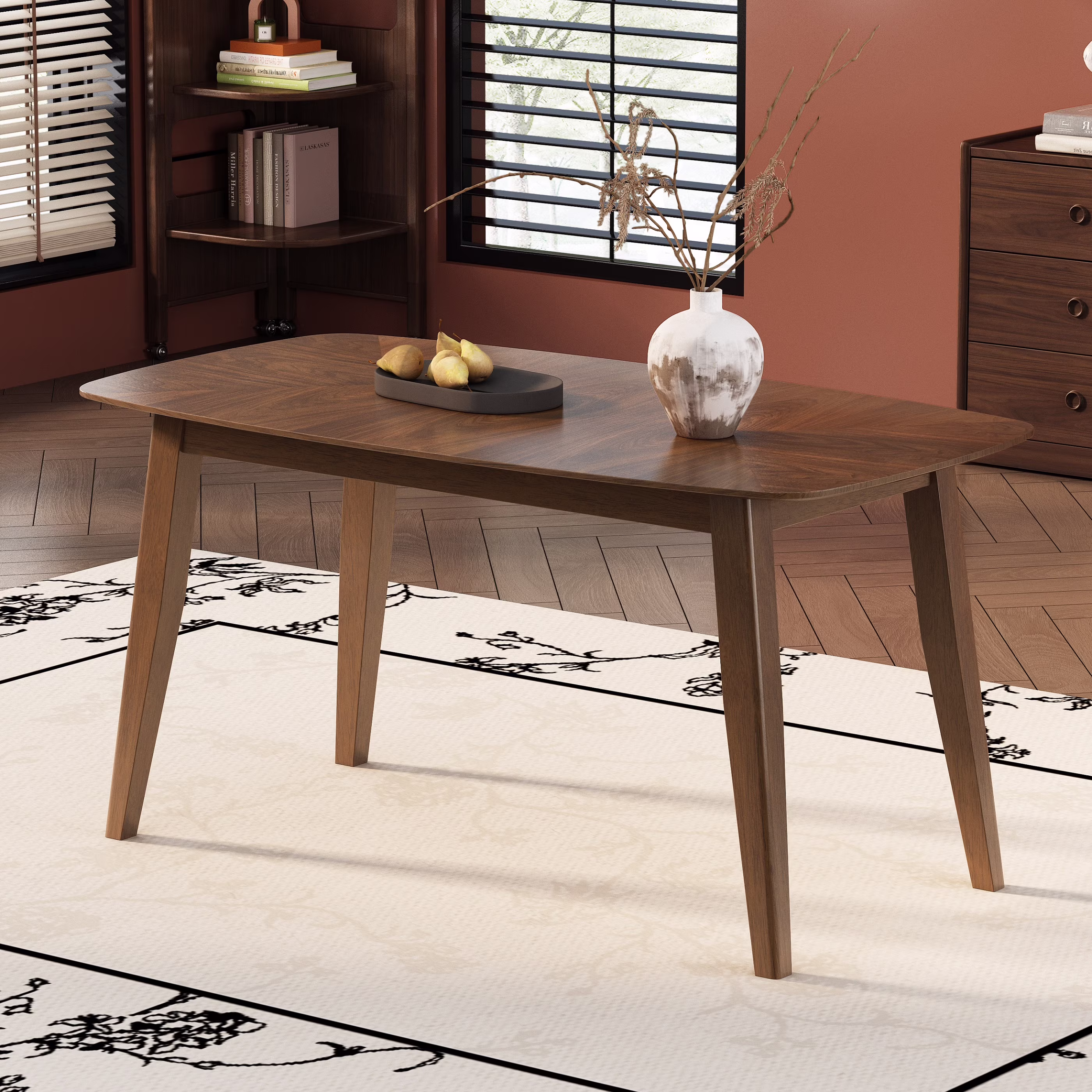 GDF Studio Howard Stylish Mid-Century Dining Table with Wood Top & Legs, Walnut