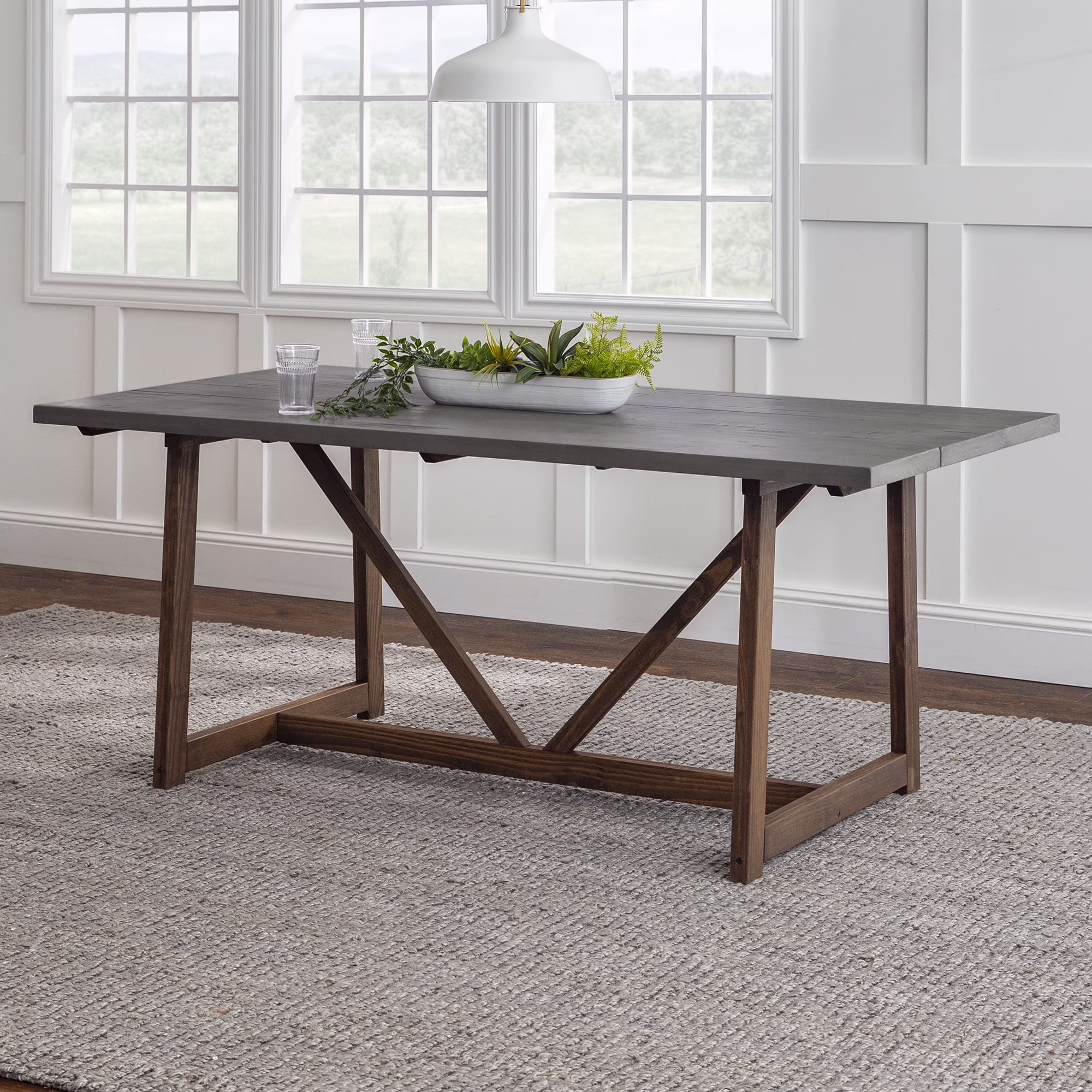 Walker Edison Modern Solid Wood Trestle Dining Table, Grey/Brown