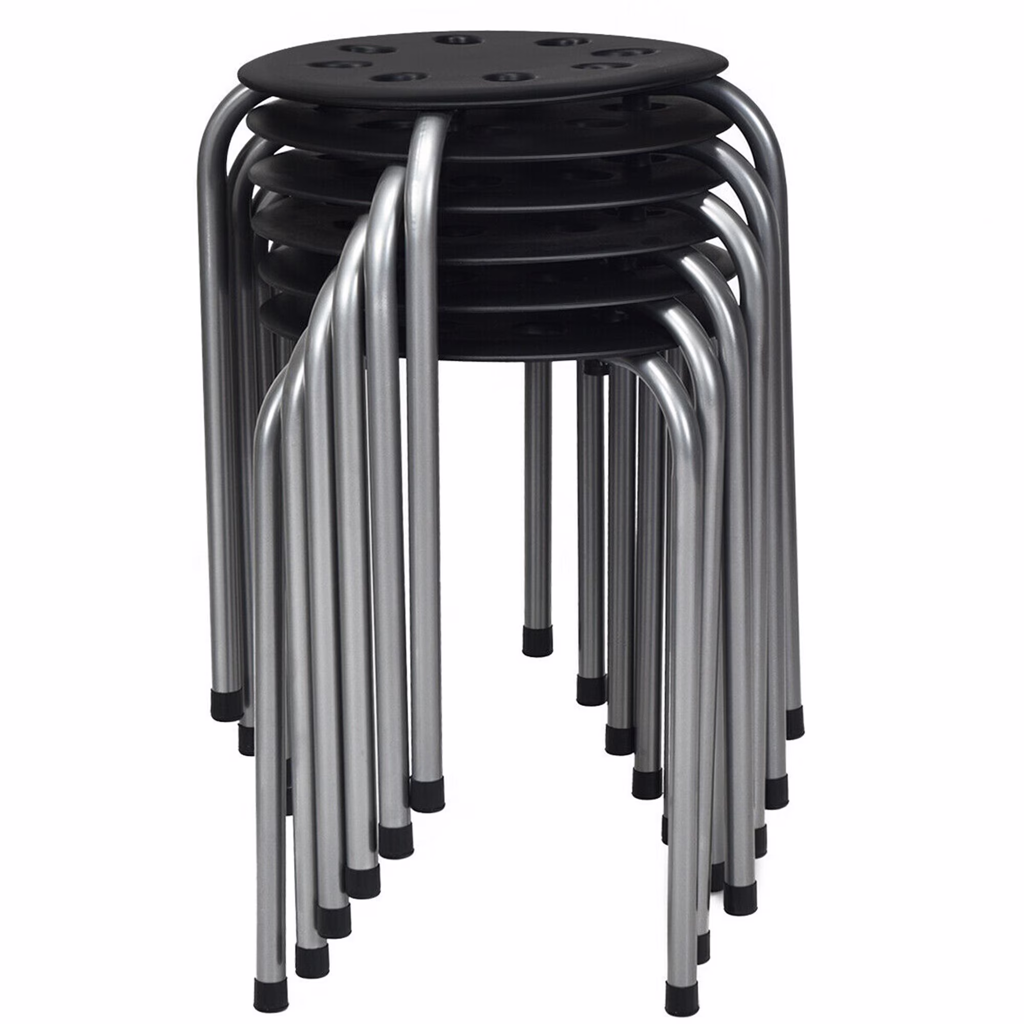 Gymax Set of 6 Portable Plastic Stack Stools Backless Classroom Seating Black and Gray