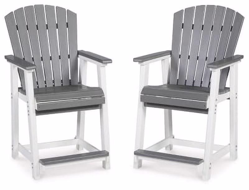 Signature Design by Ashley Casual Transville Outdoor Counter Height Bar Stool (Set of 2) Gray/White