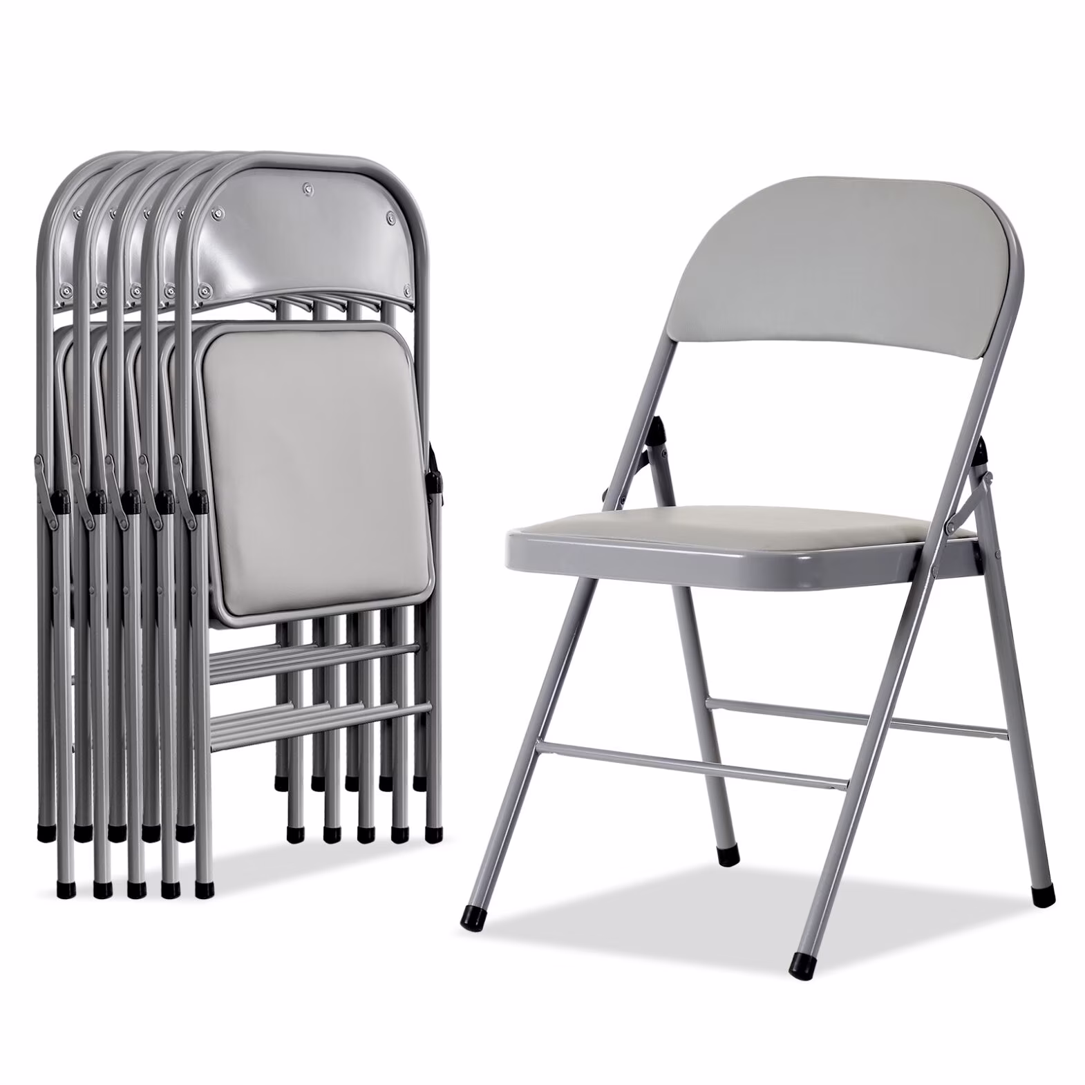 6 Pack Gray Folding Chairs with Padded Seats, Portable Stackable Foldable Chairs for Indoor & Outdoor, Commercial Seat with Metal Frame for Events Office Wedding Party, 330lbs Capacity