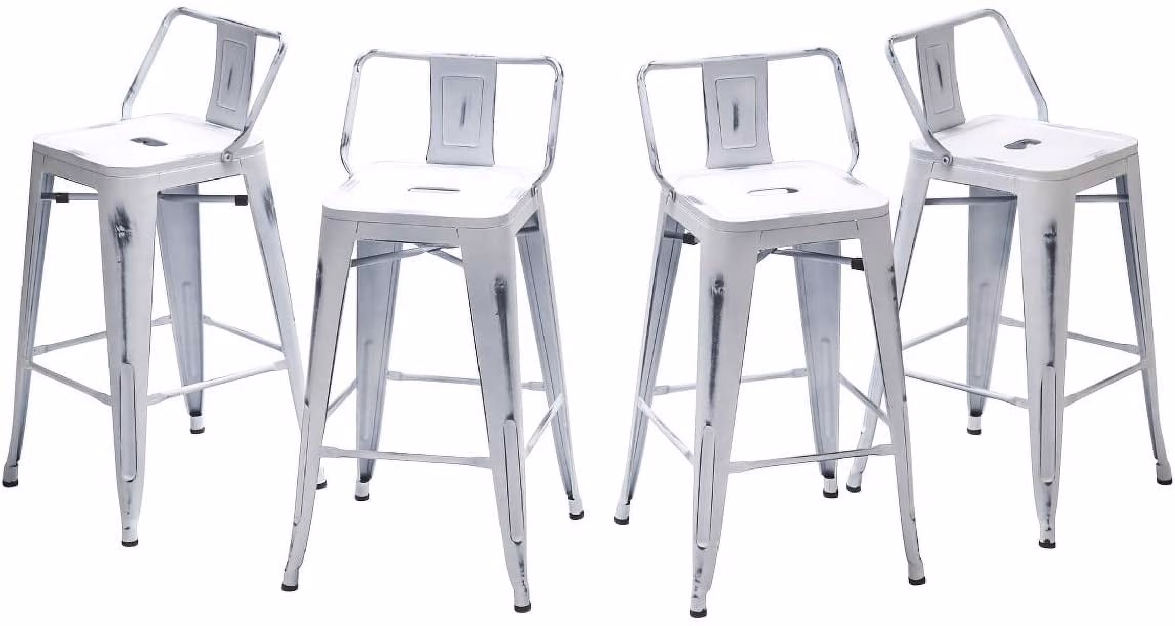 Andeworld 30" Low Back Distressed White Bar Stools Metal Barstools Counter Height Stools [Set of 4]