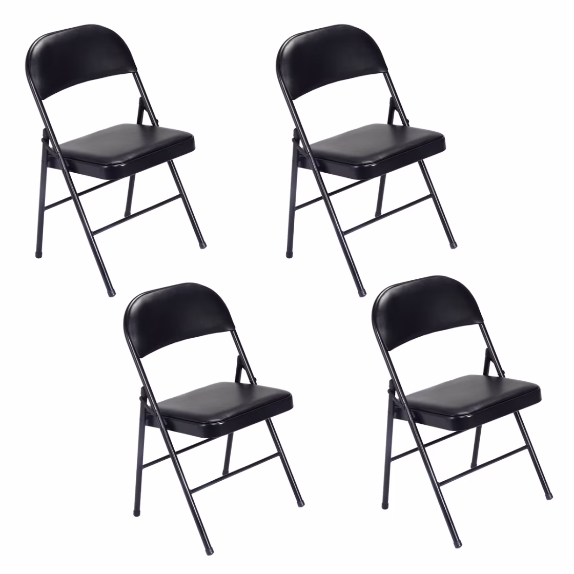 4pcs Folding Chairs with Padded Seats, Fold up Event Chairs, Portable Stackable Commercial Chairs with Iron Frame, 330lbs Weight Capacity, for Convention & Exhibition, Black