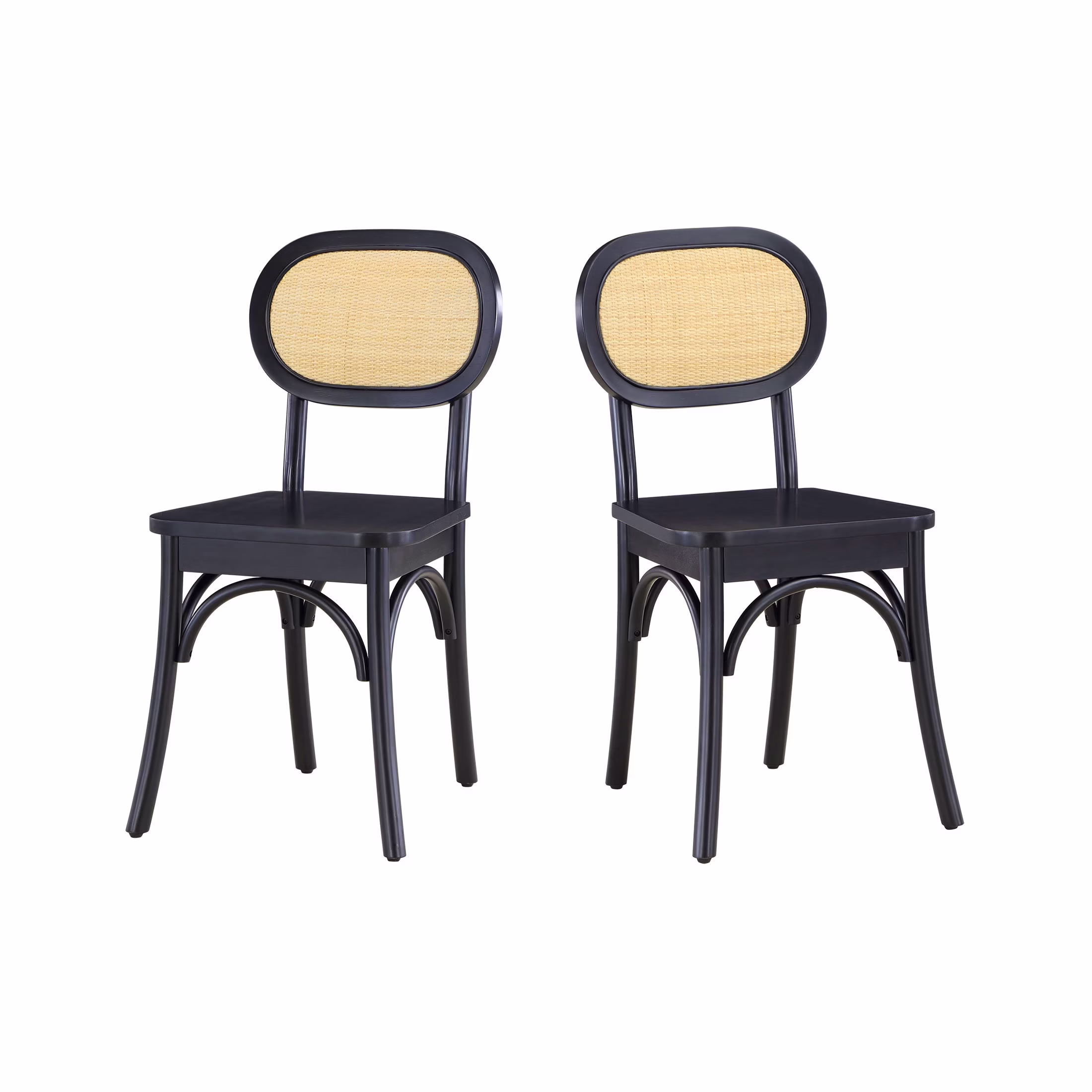 Better Homes & Gardens Camden Dining Chairs with Rattan and Solid Wood, Black Wood finish, by Dave & Jenny Marrs