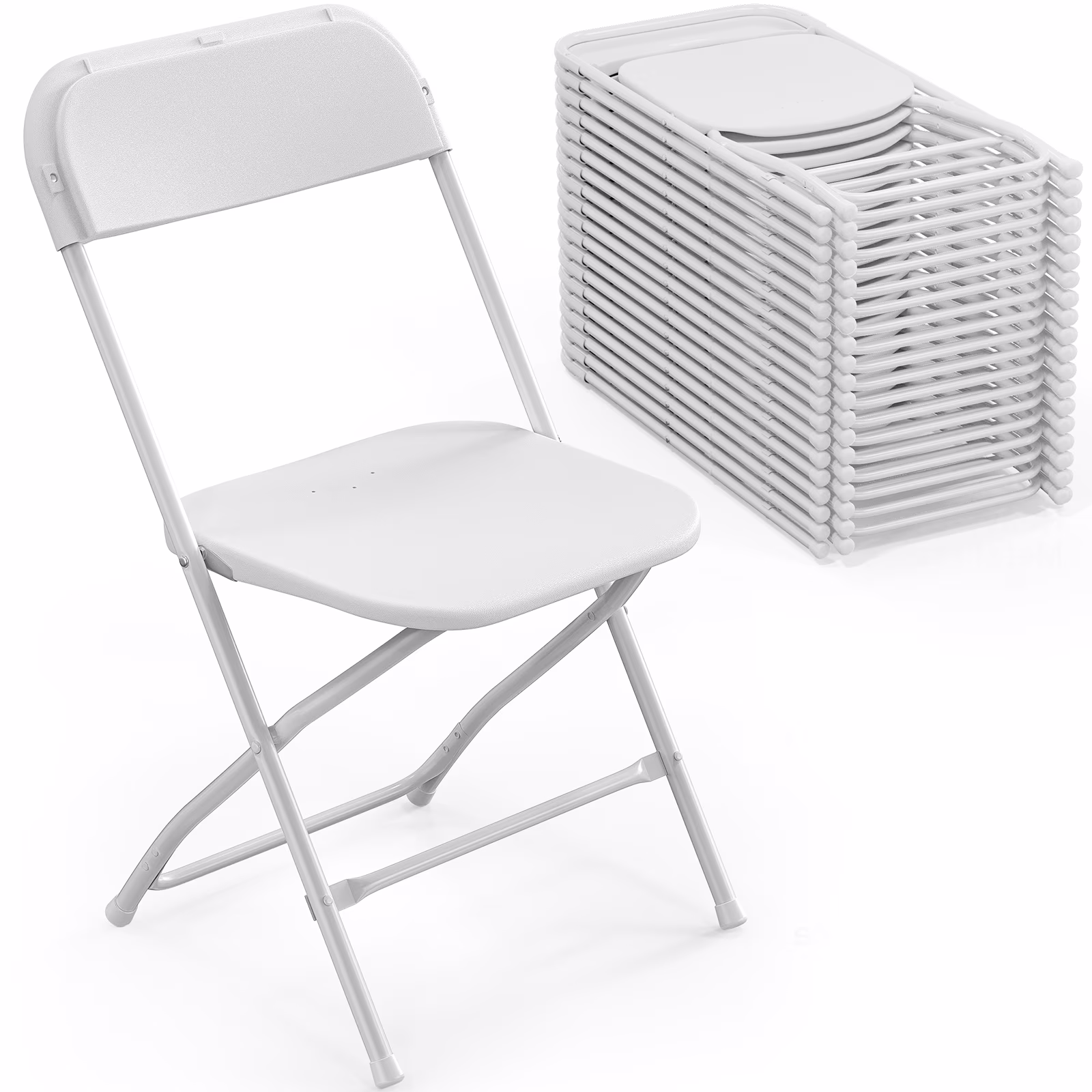 Matladin 20-Pack White Plastic Folding Chair, Outdoor Portable Stackable Commercial Seat with Steel Frame for All Occasions, 350lb Capacity