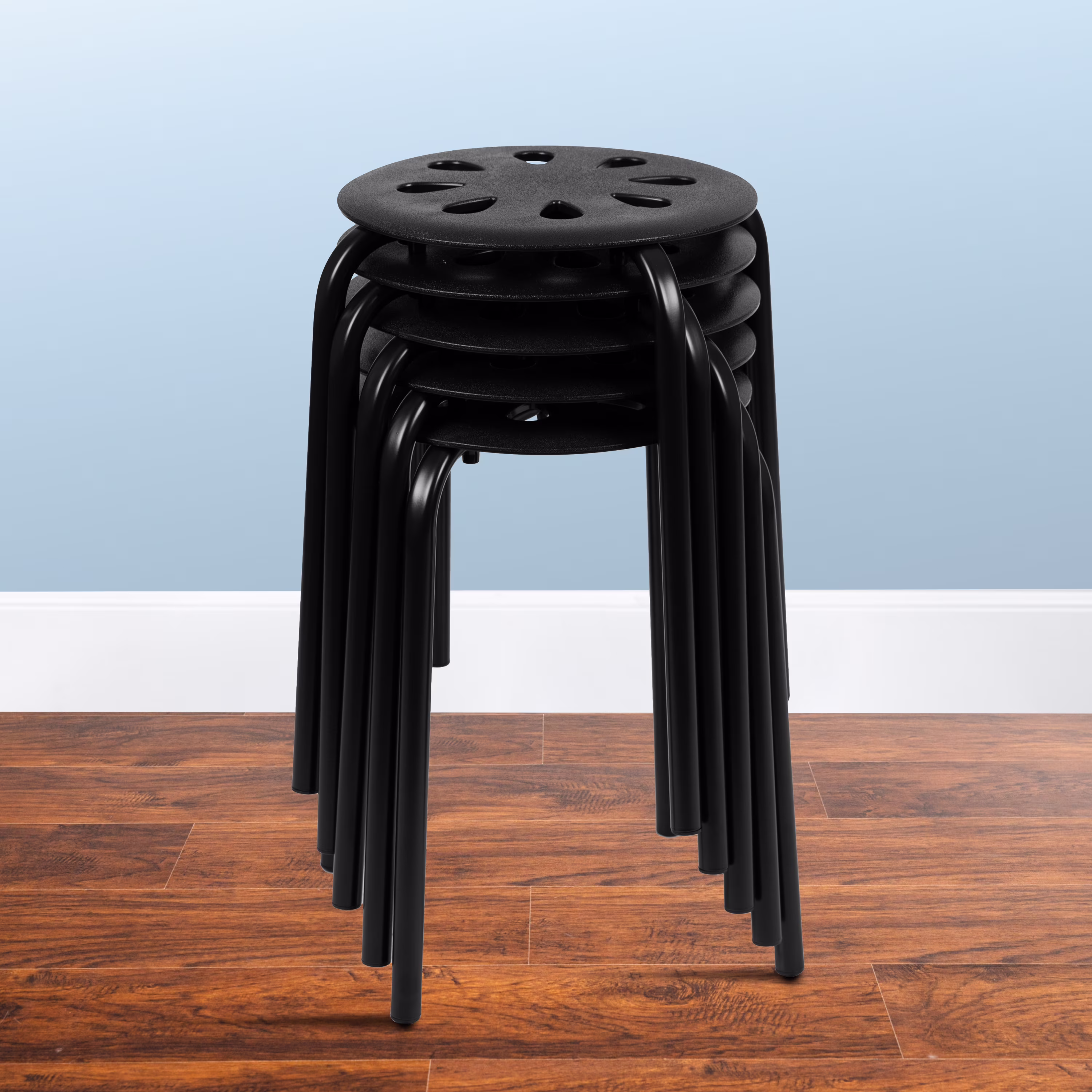 Emma + Oliver Plastic Nesting Stack Stools - School/Office/Home, 17.5"Height, Black (5 Pack)