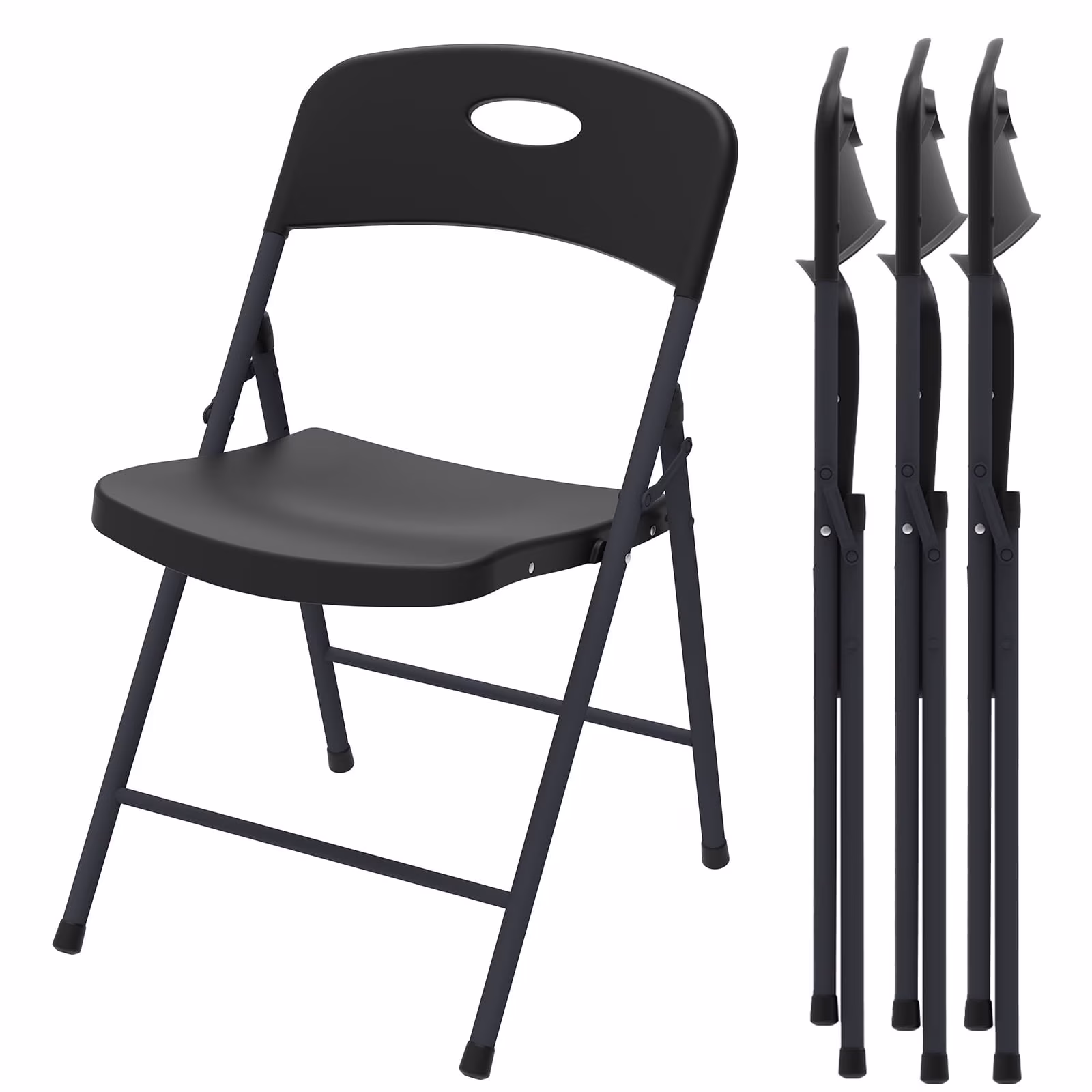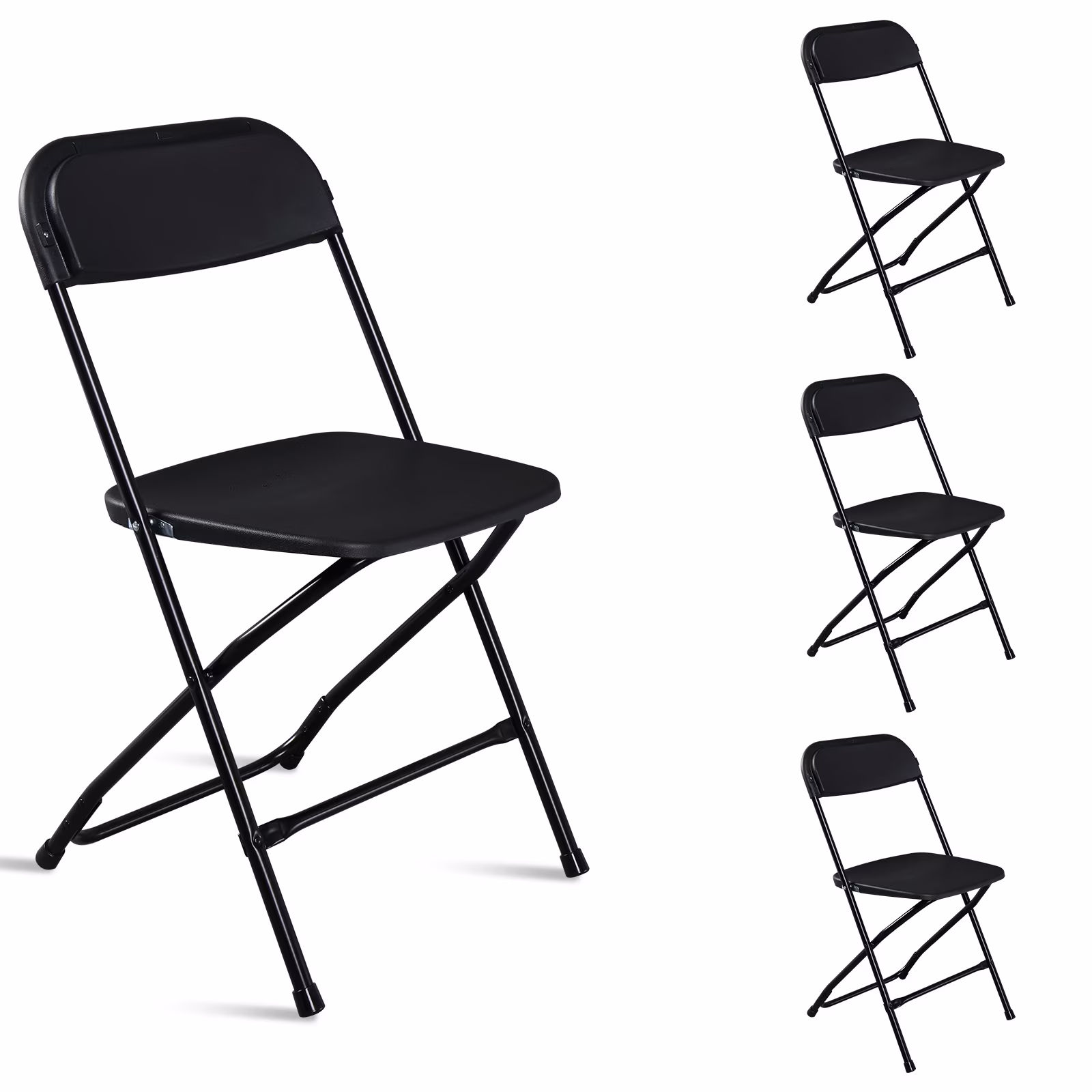 MAKE CHANGES 4PCS Folding Chairs with Enhanced Iron Frame, Outdoor Plastic Stackable Foldable Chairs for Outside, Indoor, Party, Wedding, Meeting Room, Patio, Garden, Weight Capacity 350 lbs, Black