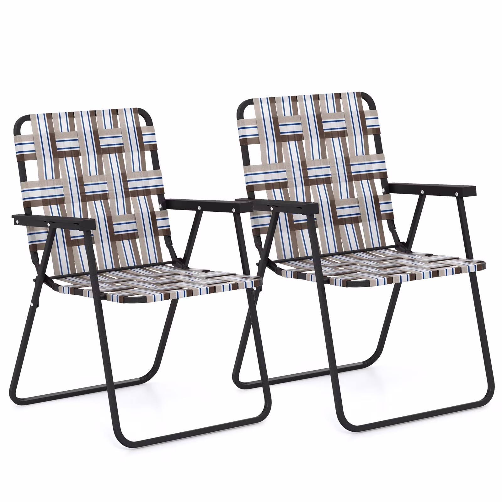 Topbuy Set of 2 Webbed Lawn Chairs, Outdoor Patio Folding Chairs w/ Heavy-Duty Metal Frame Lightweight Portable Web Camping Chairs Brown